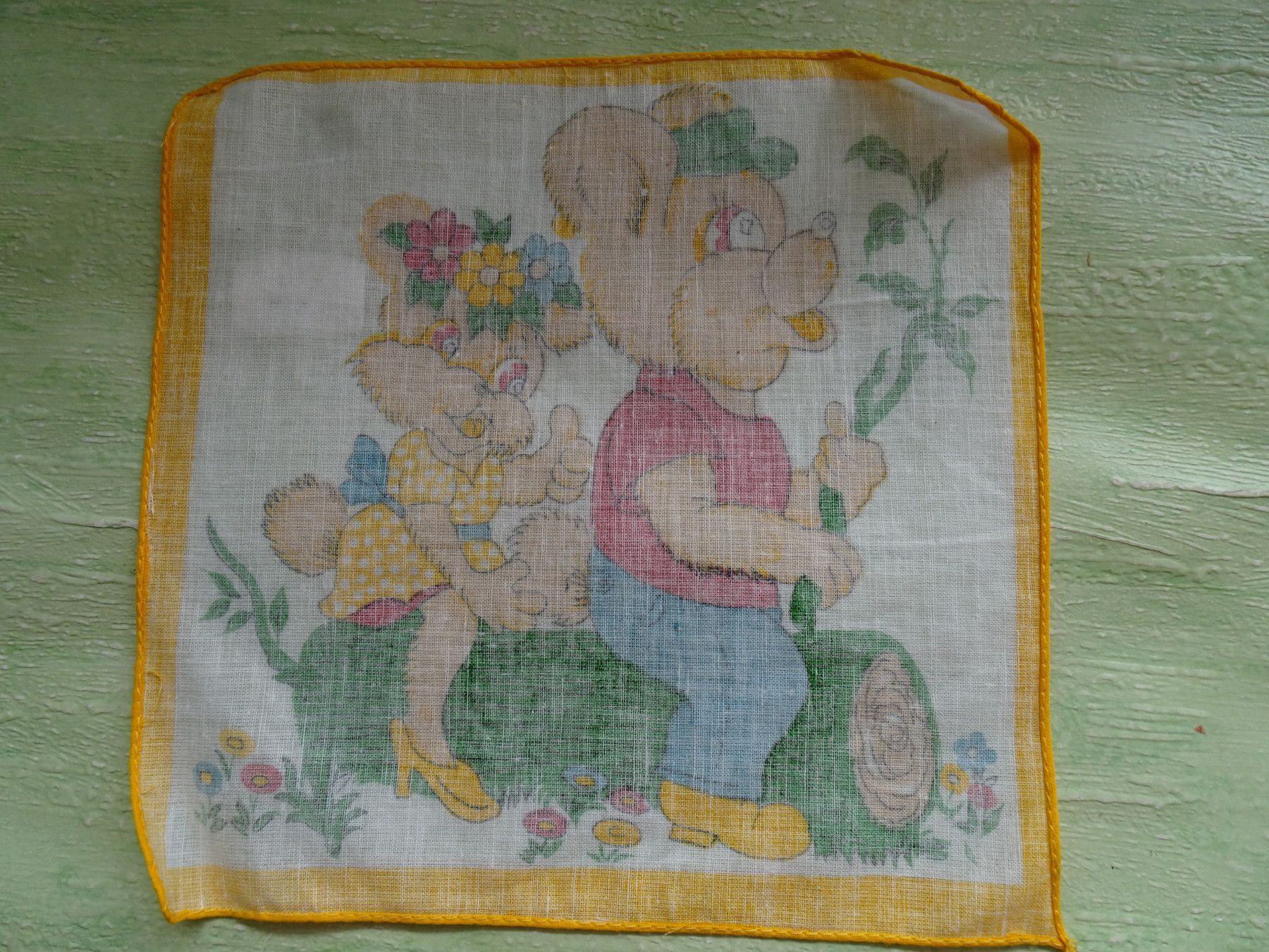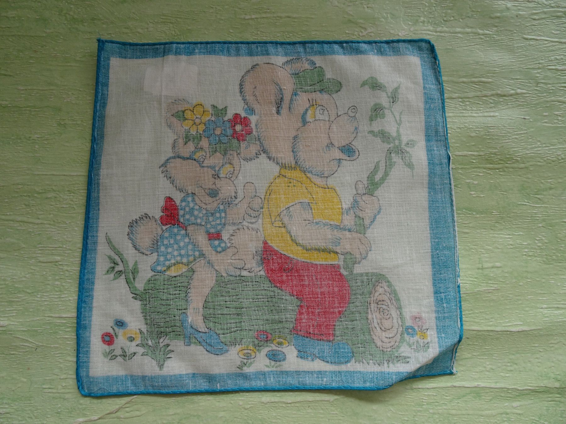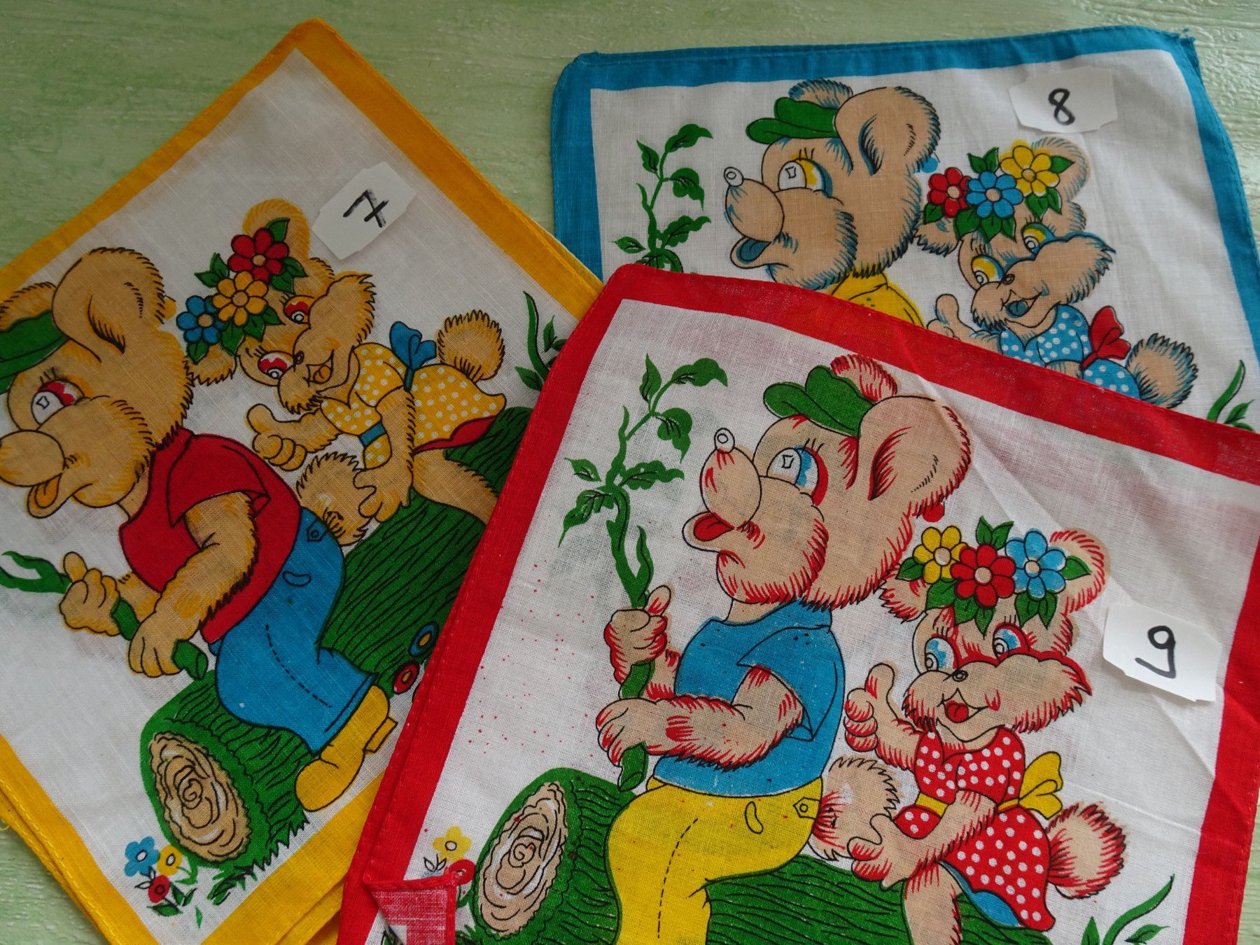 alte Stofftaschentücher Kindermotive lustige Bären - Auswahl -