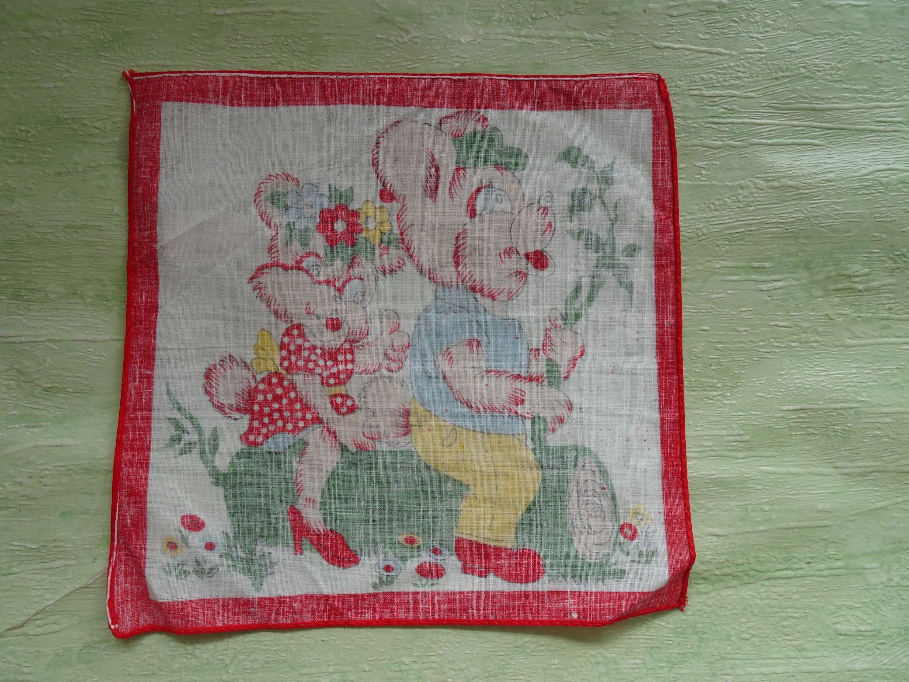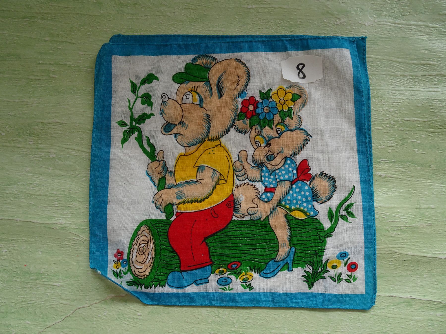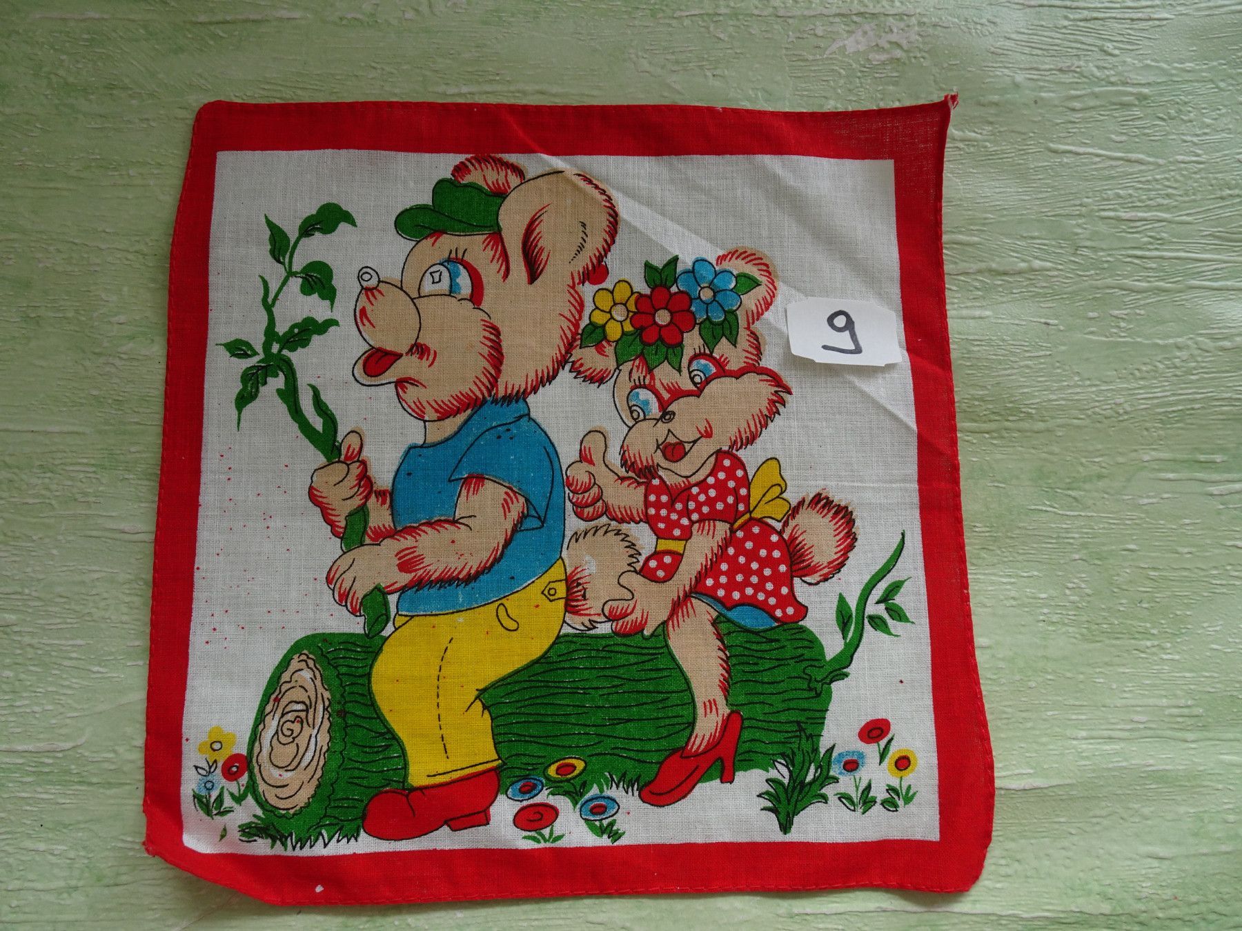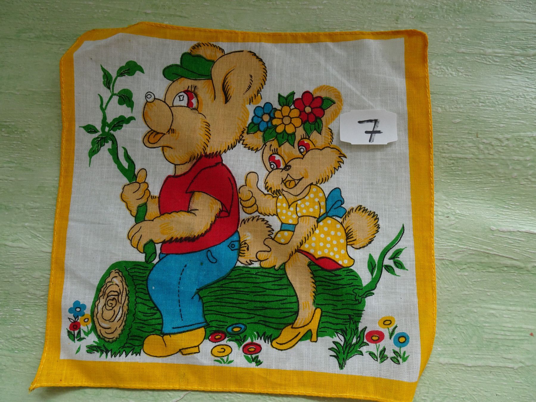 alte Stofftaschentücher Kindermotive lustige Bären - Auswahl -