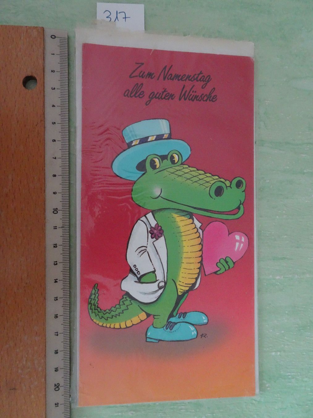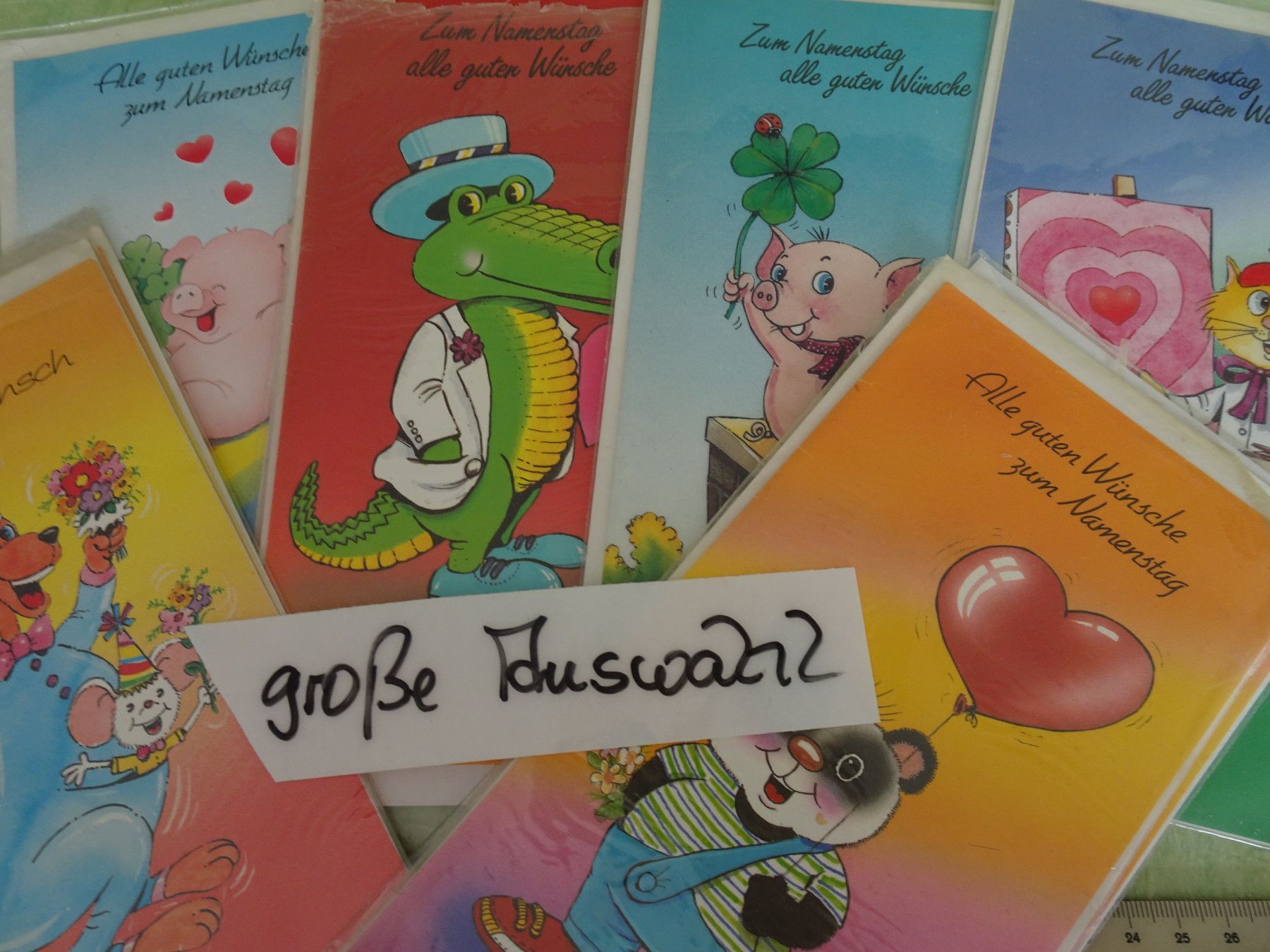 alte tierische Grußkarten Zum Namenstag Humor Primus Schwein Krokodil Katze