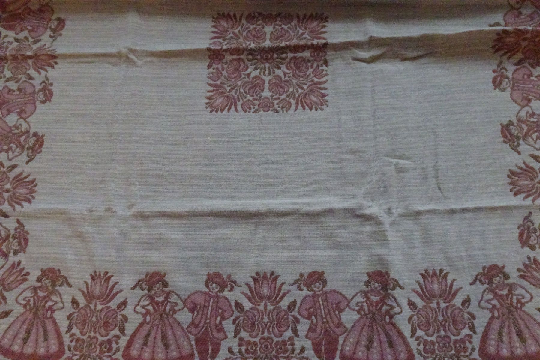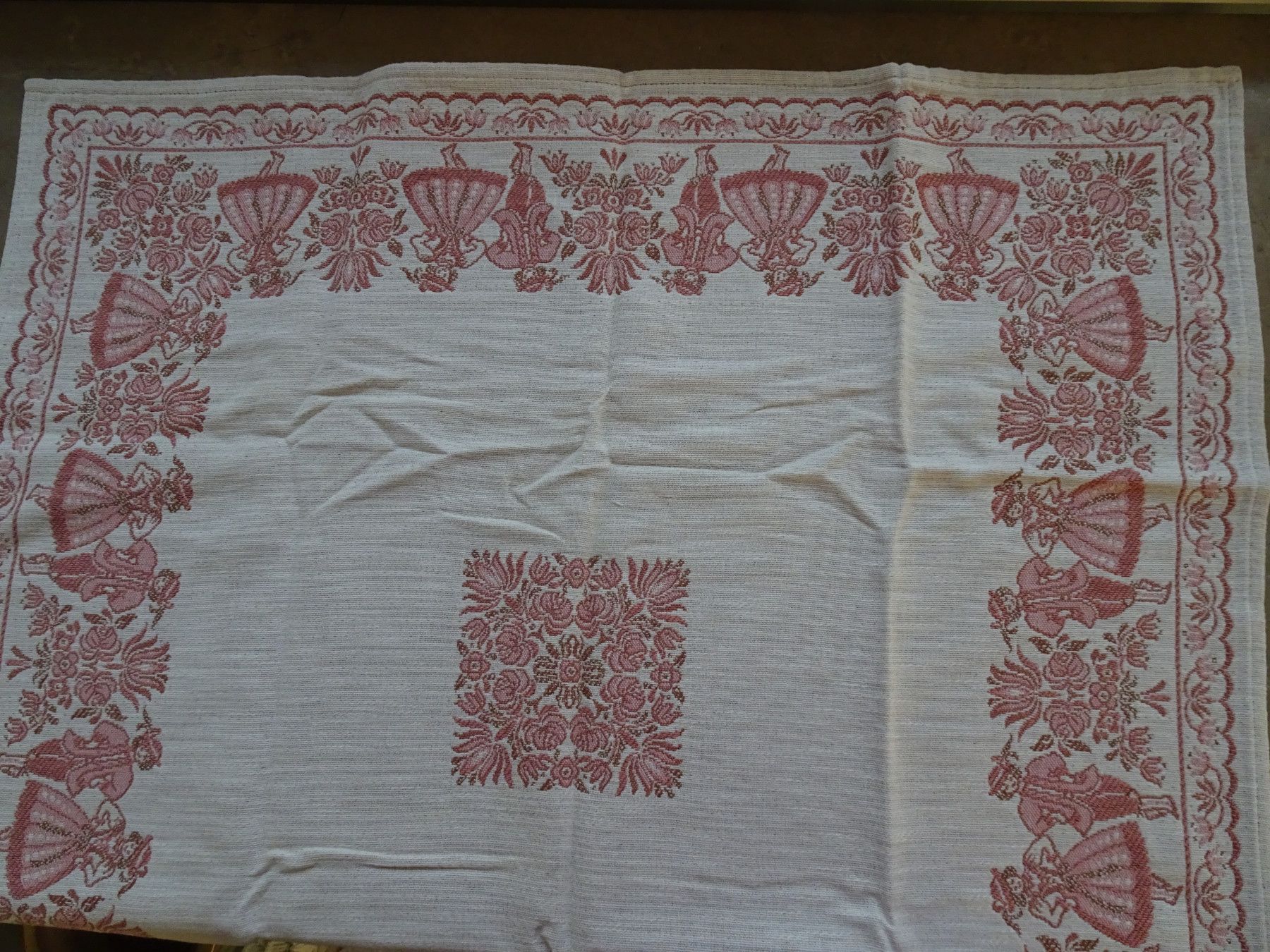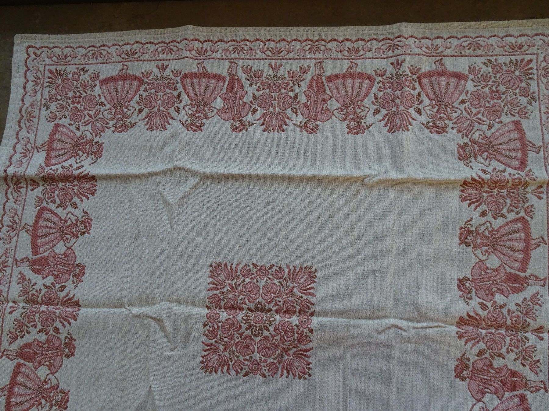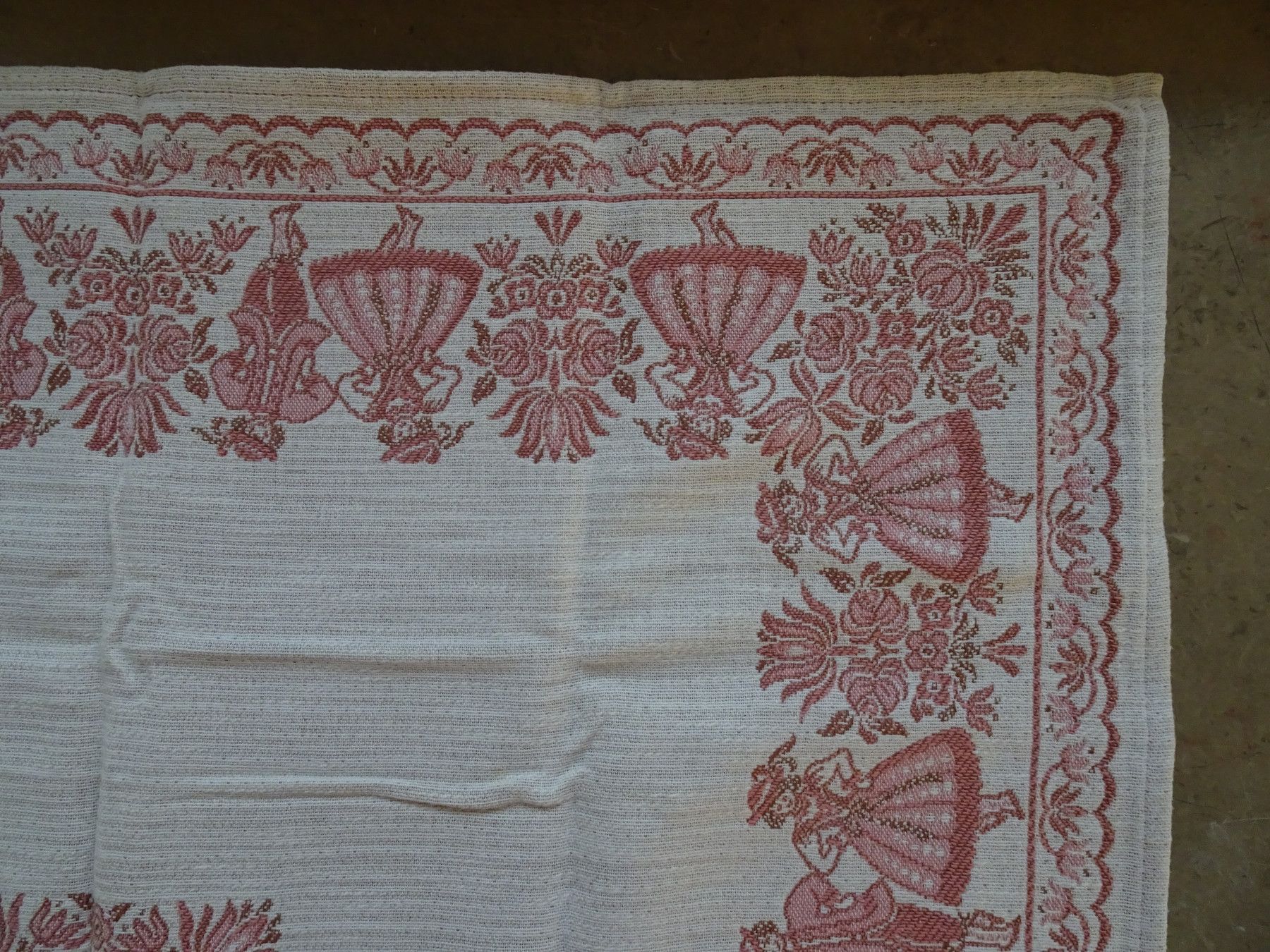 alte Tischdecken Austria Trachten Dirndl Baumwolle zart-rose rot Baumwolle Leinen