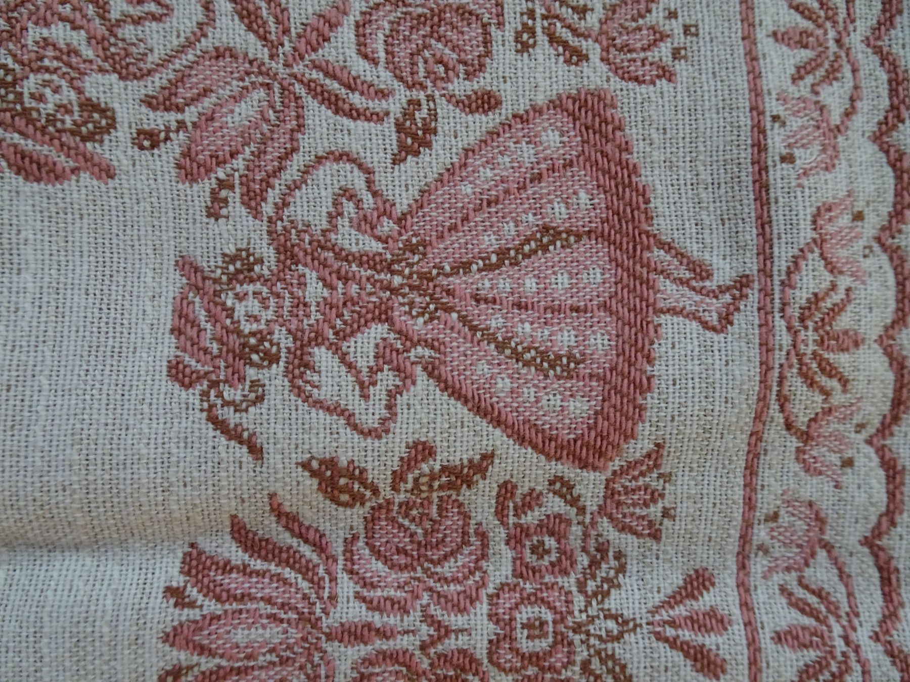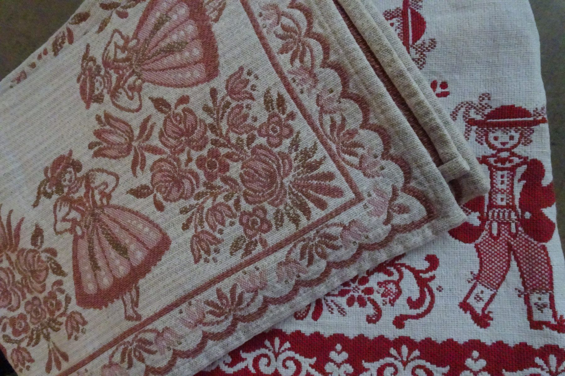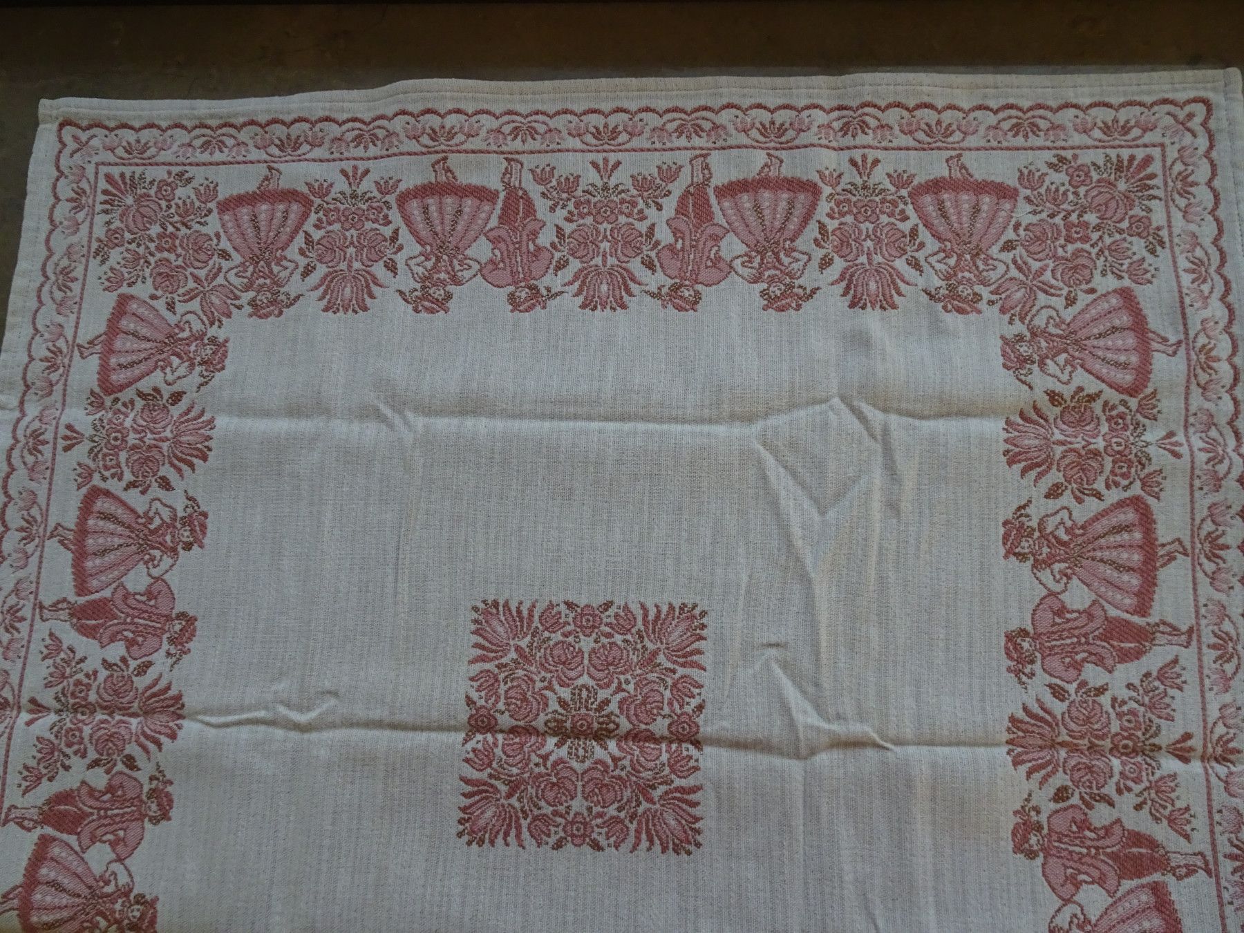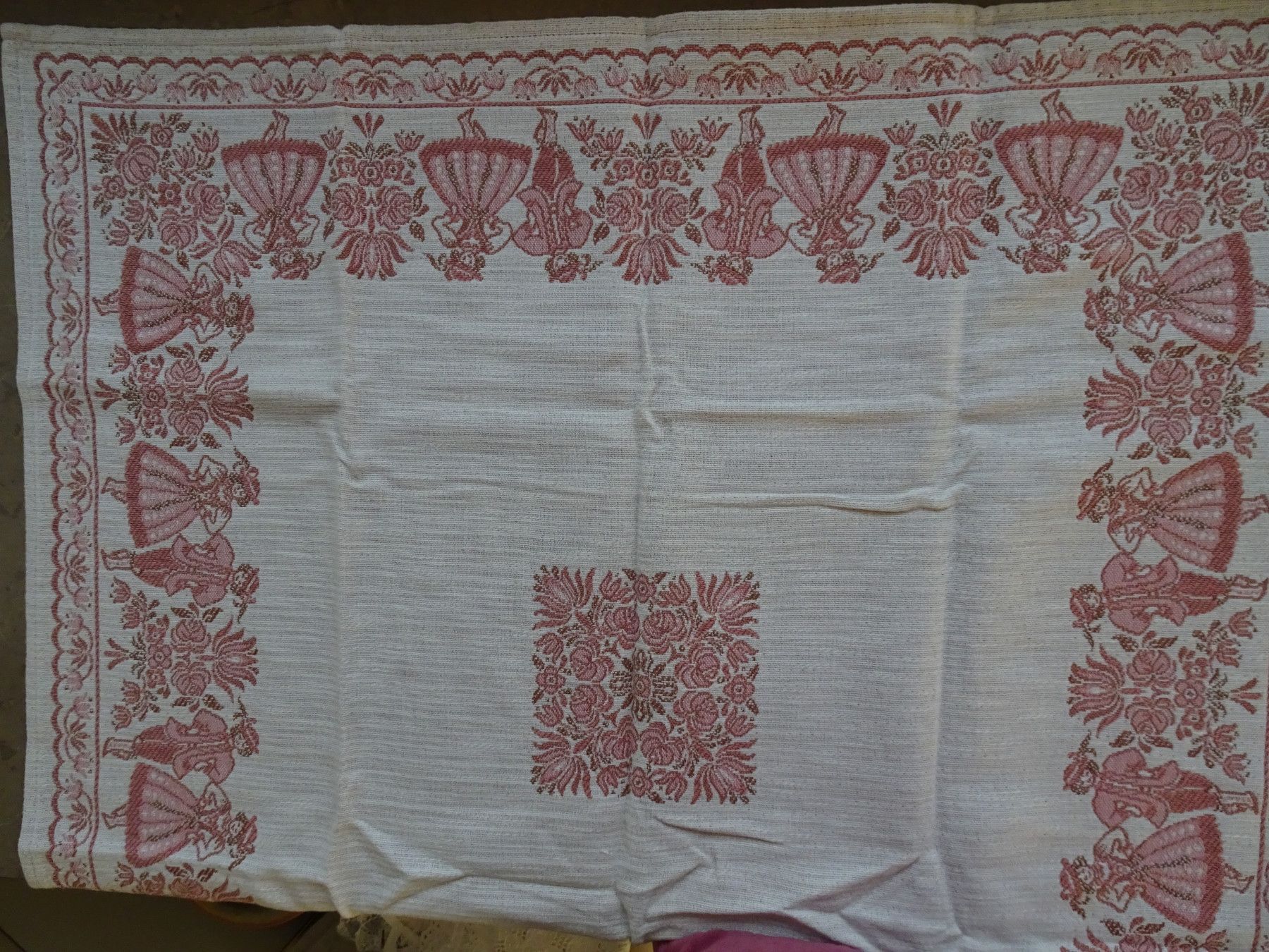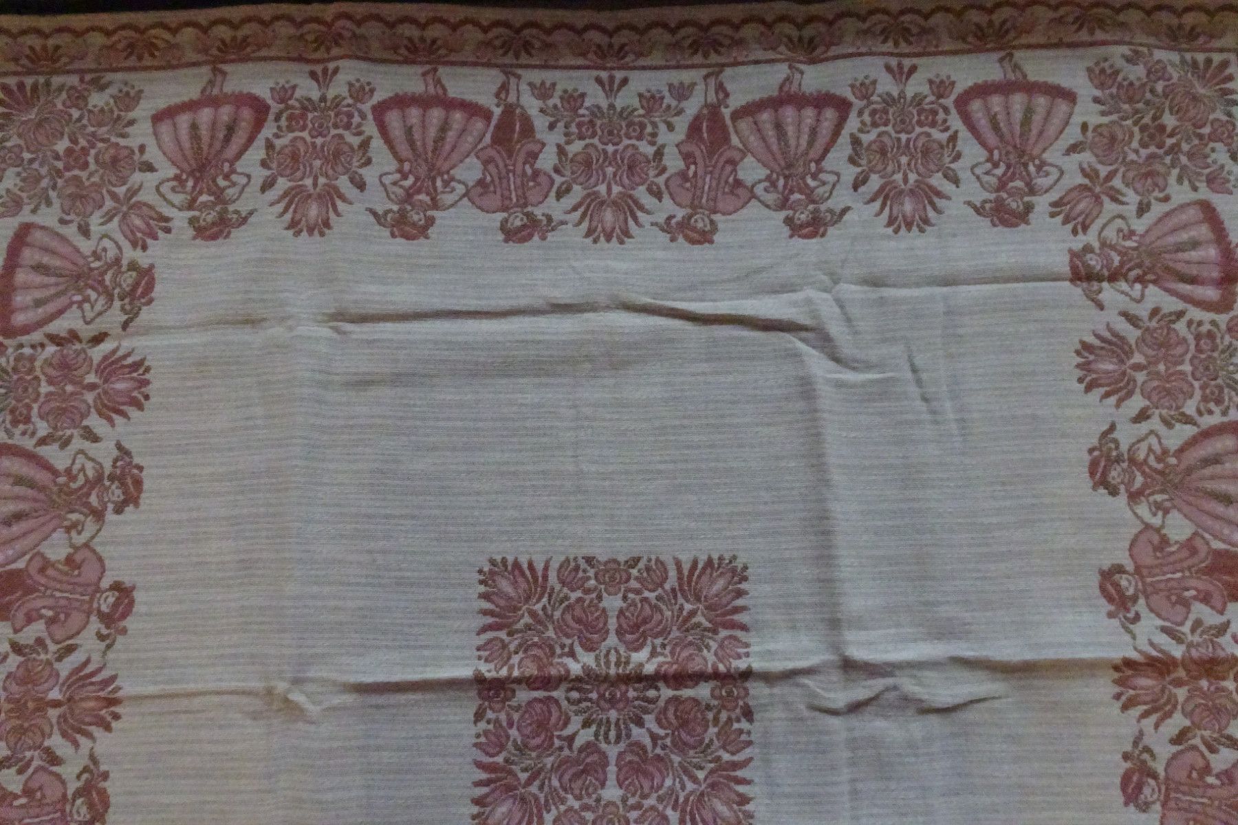 alte Tischdecken Austria Trachten Dirndl Baumwolle zart-rose rot Baumwolle Leinen