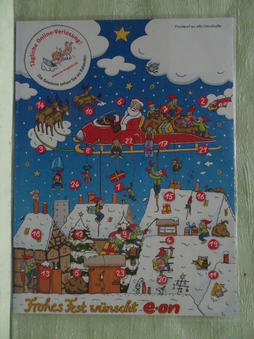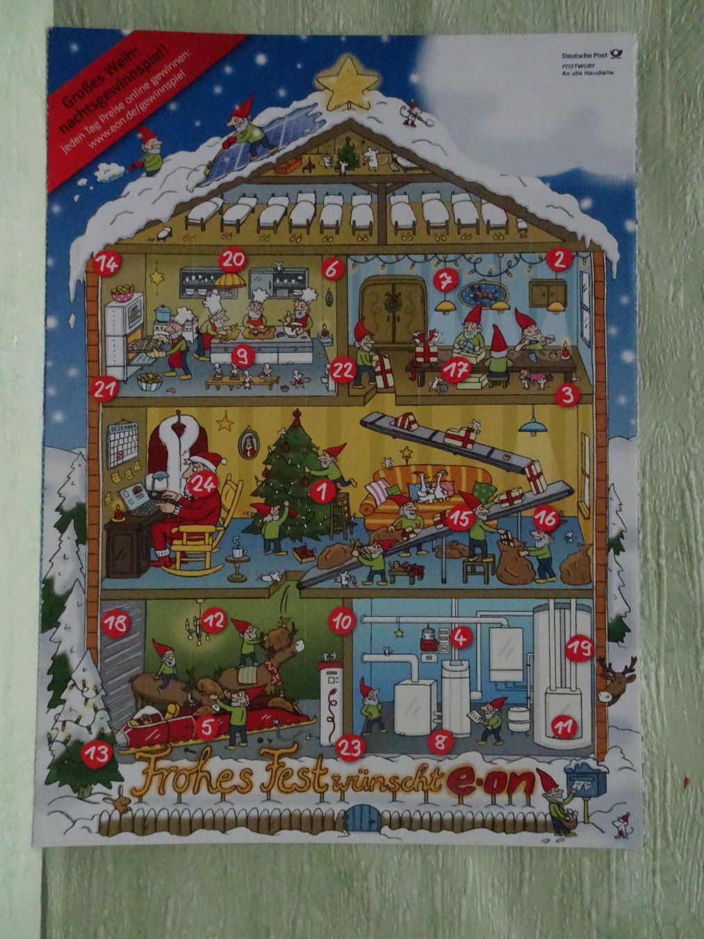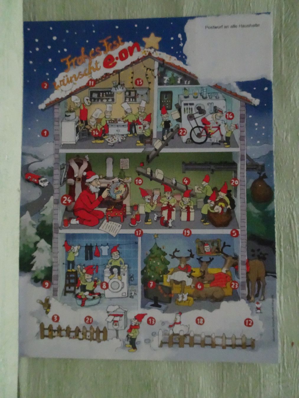 alte Werbe - Adventskalender e-on eon fleißige Zwerge Wichtel Weihnachtsmann