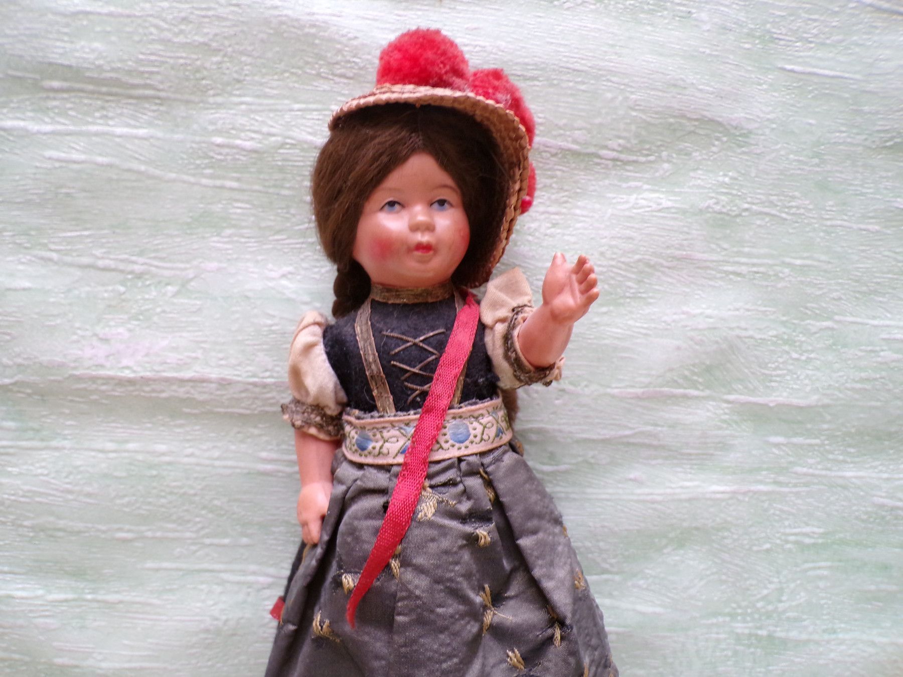 Ältere Zelluloid / Kunststoff Trachten-Puppe / Handarbeit