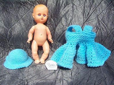 Kleine, italienische Zelluloid-Puppe + Kleid u. Hut