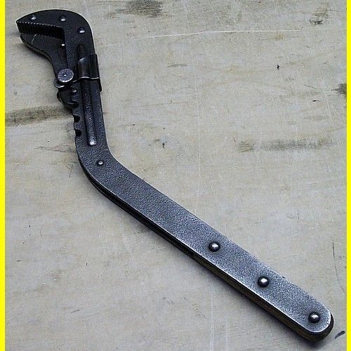 alter genialer Schlüssel mit Ratschenfunktion und Holzeinlage ca. 40,5 cm