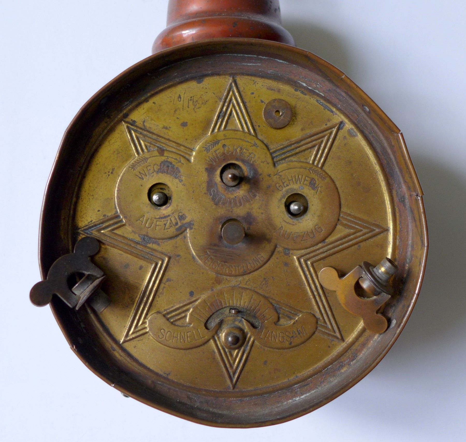 gebrauchter Zustand mit Gebrauchs - und Lagerspuren siehe Fotos , ungereinigter Fundzustand , Gangwerk und Läutwerk funktionieren , das Gangwerk ist über mehrere Stunden gelaufen , über die komplette Gangdauer wurde nicht überprüft , Durchmesser hinten ca. 12,8 cm , Höhe mit umgelegten Ring ca. 18,5