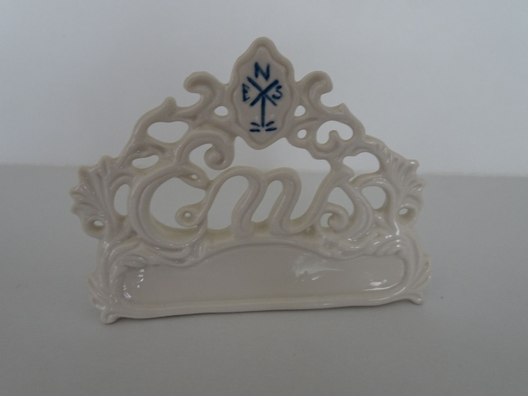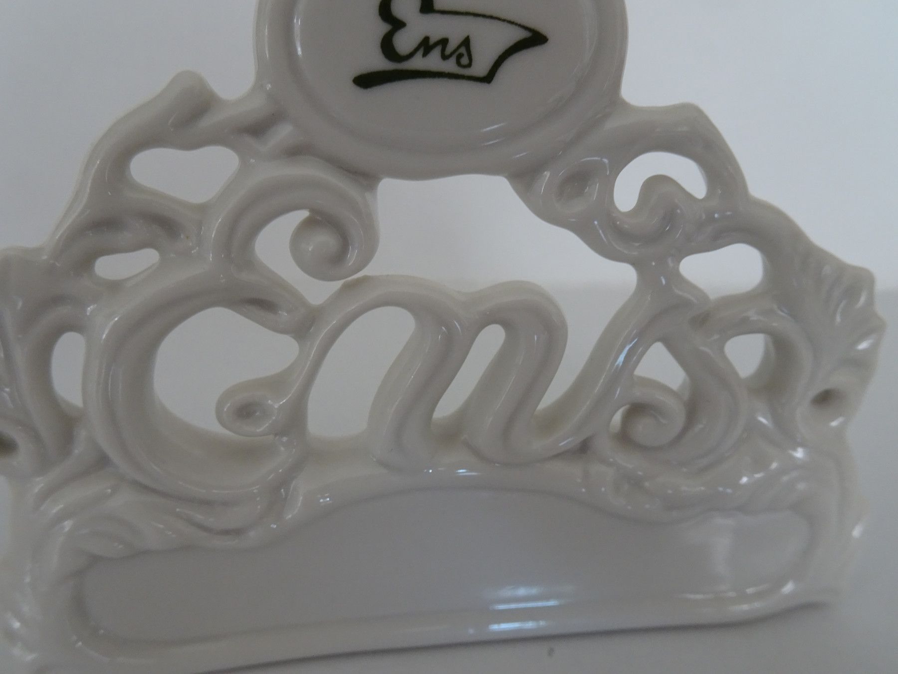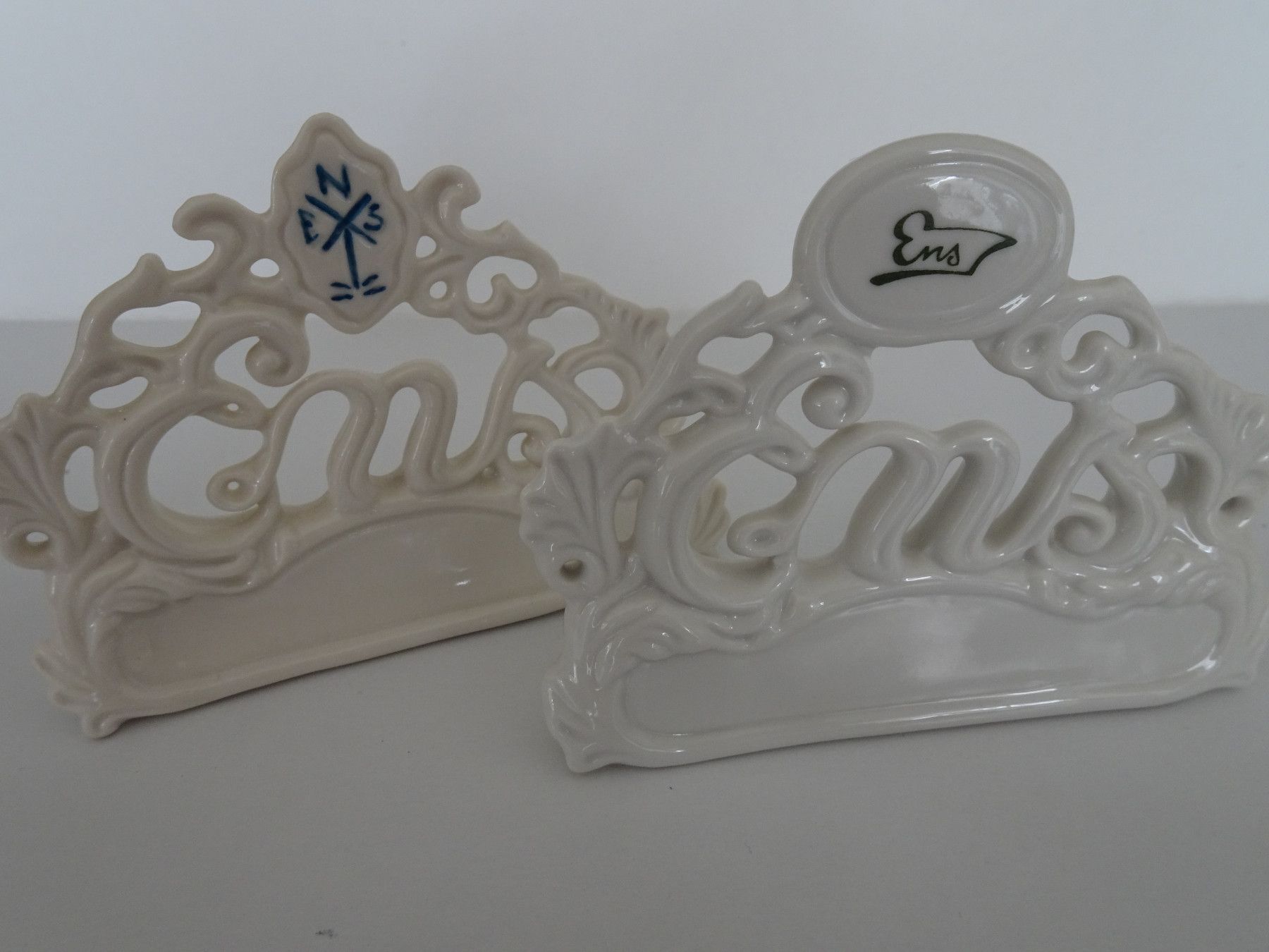 alter Porzellanaufsteller Schild Bodenmarke Manufaktur Ens "grün / blau Volkstedt