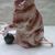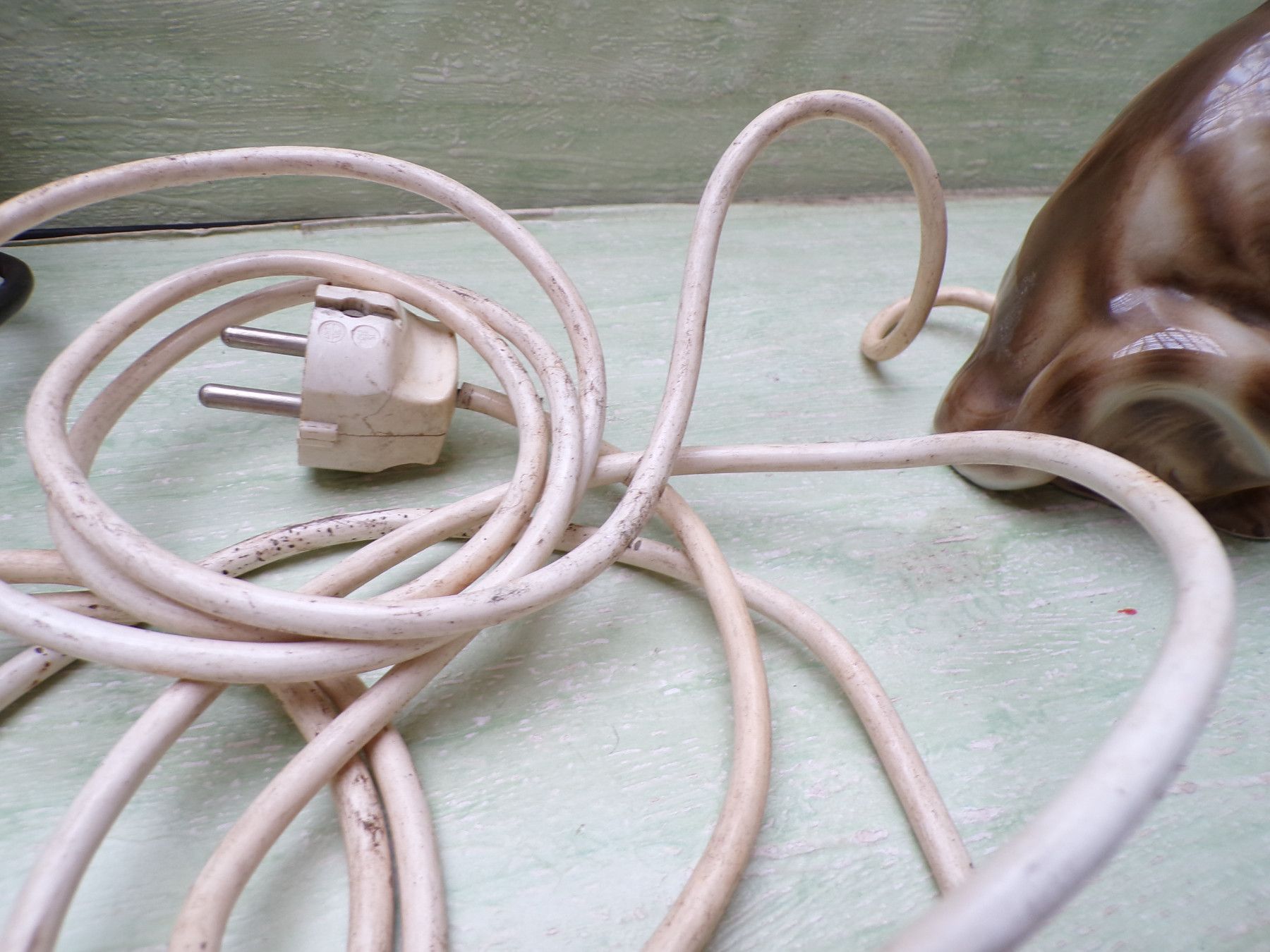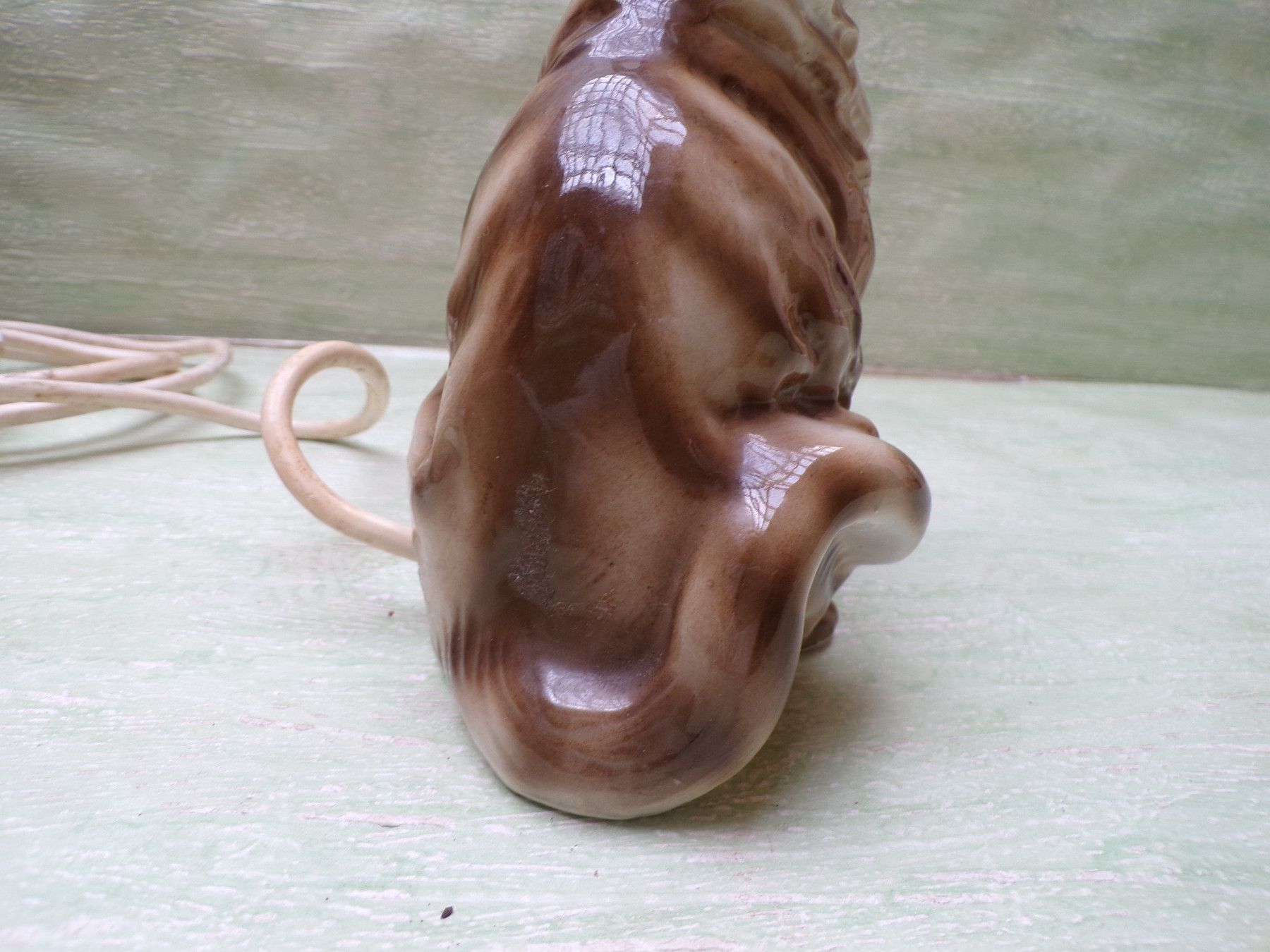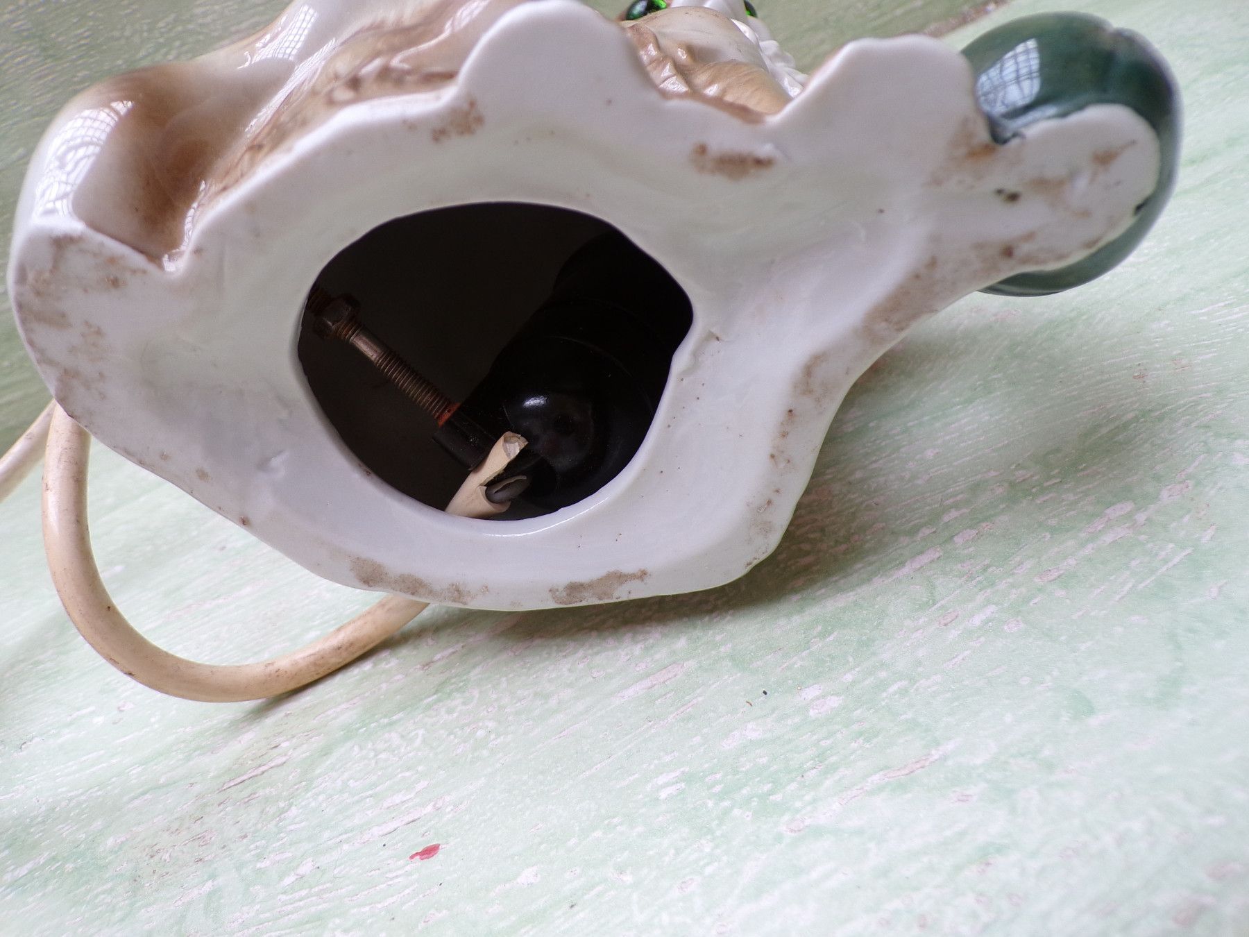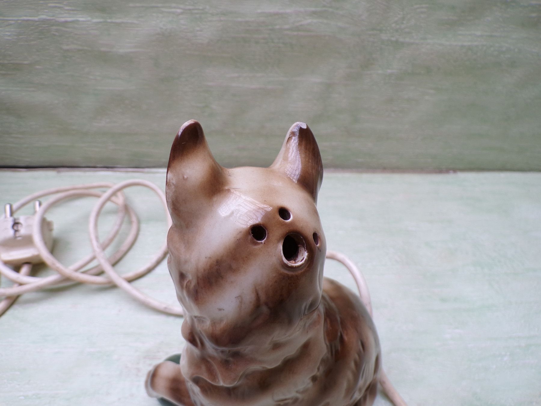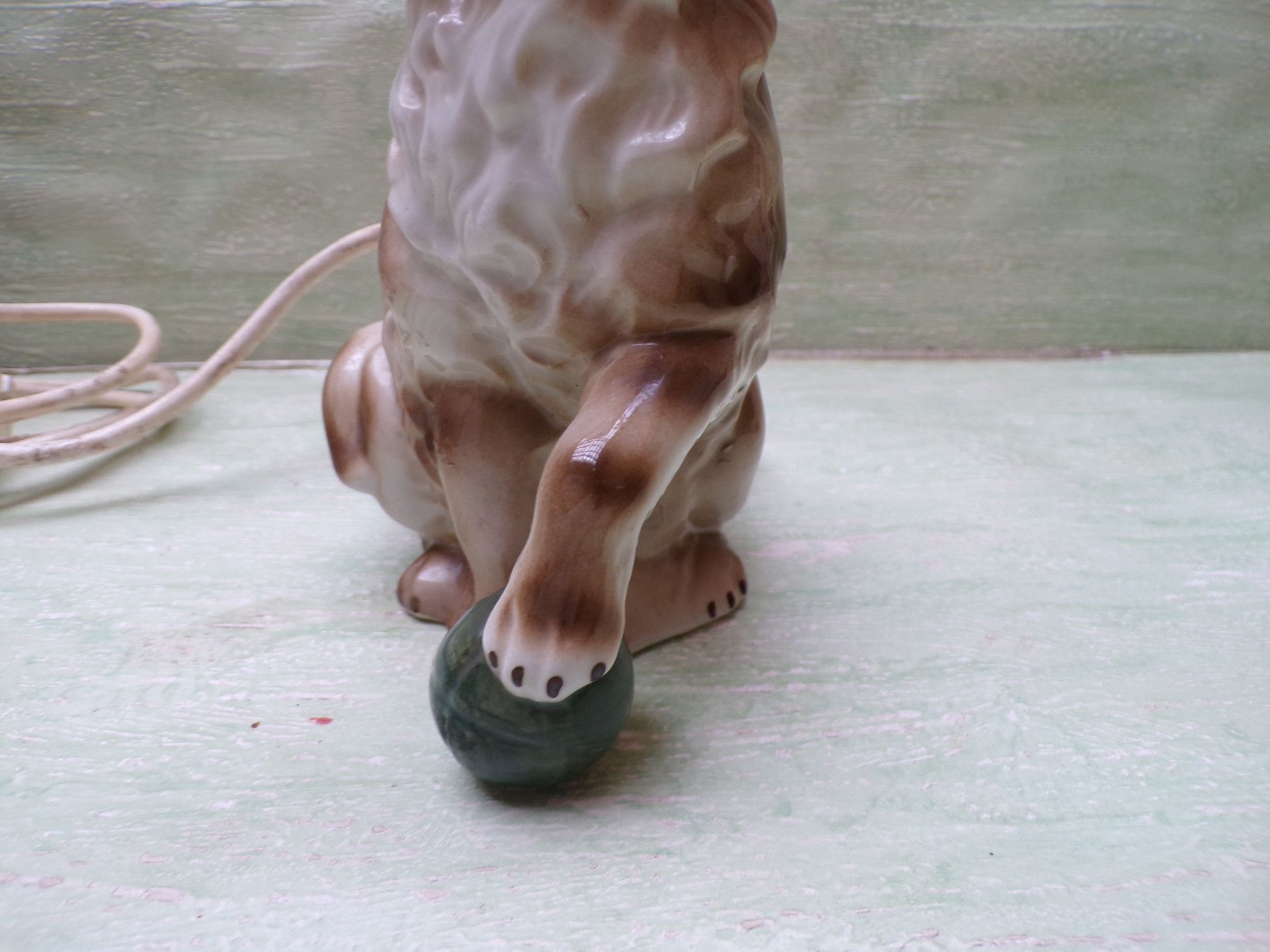 alter Rauchverzehrer Porzellan Katze grüne Augen Ball & alte Elektrik