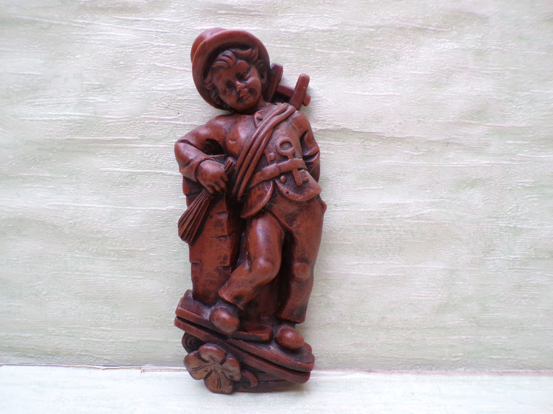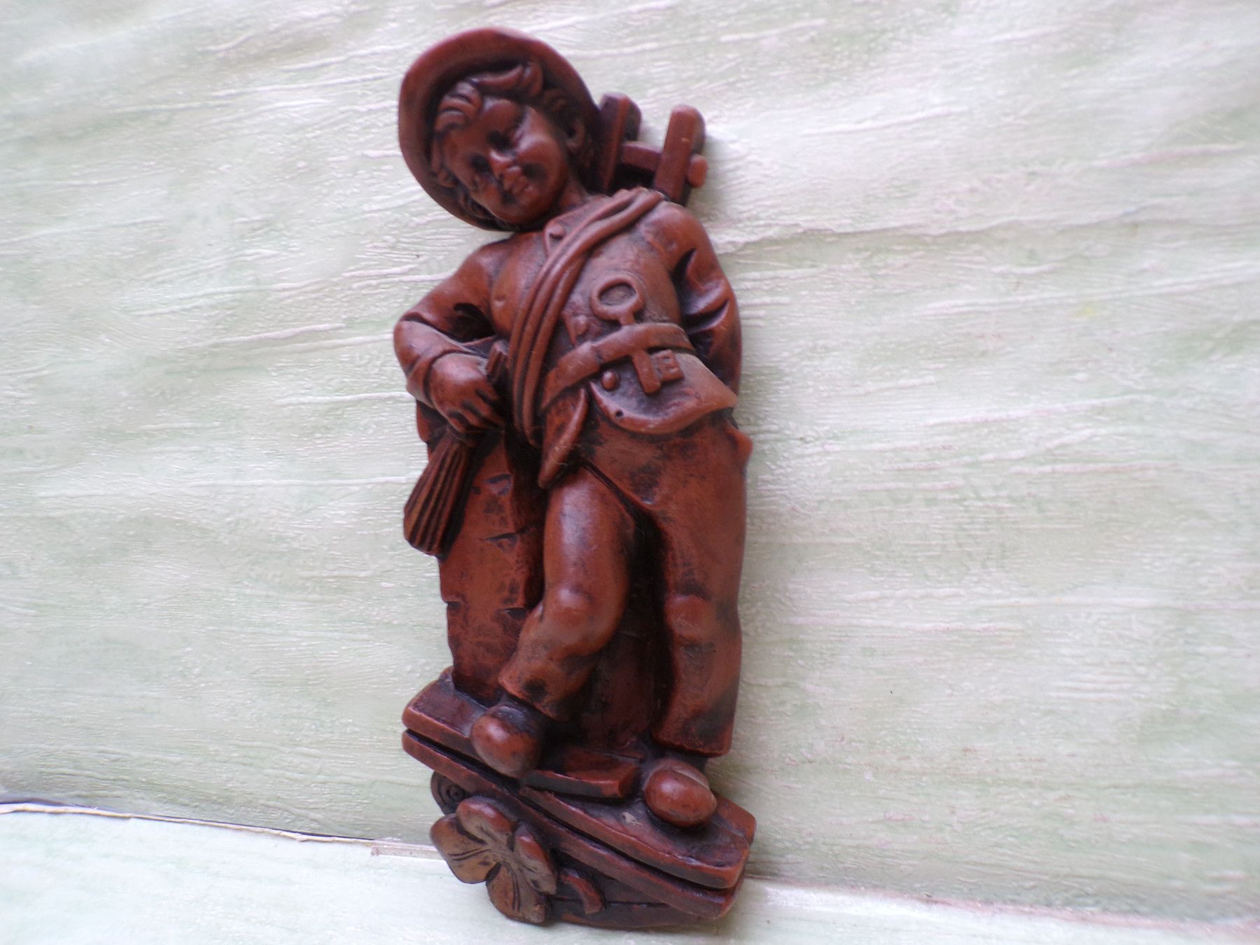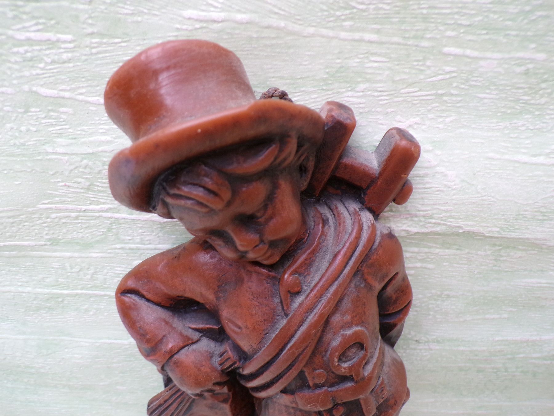 Alter Schornsteinfeger Wachs Wandbild Glücksbringer Kleeblatt ca 29cm