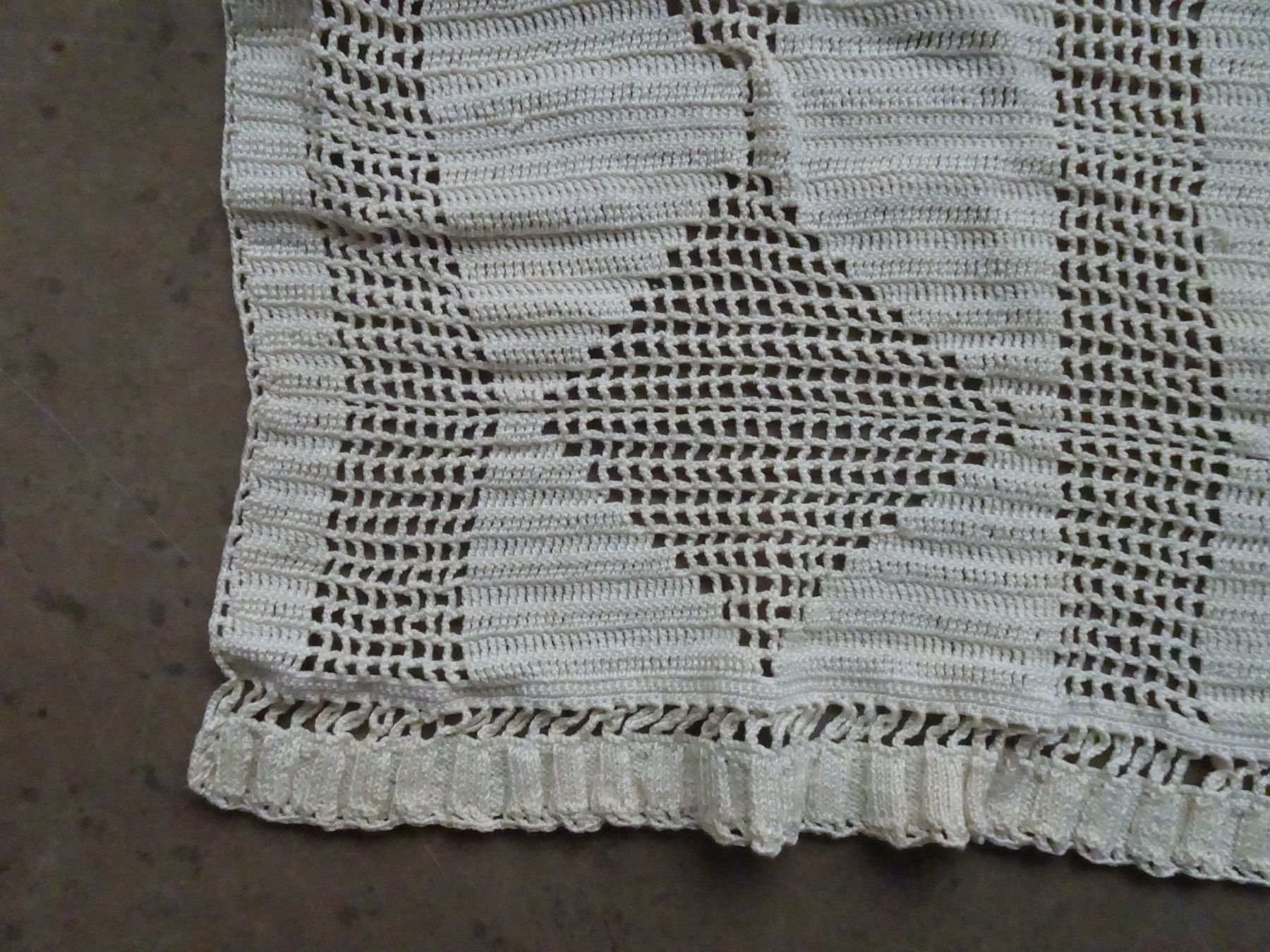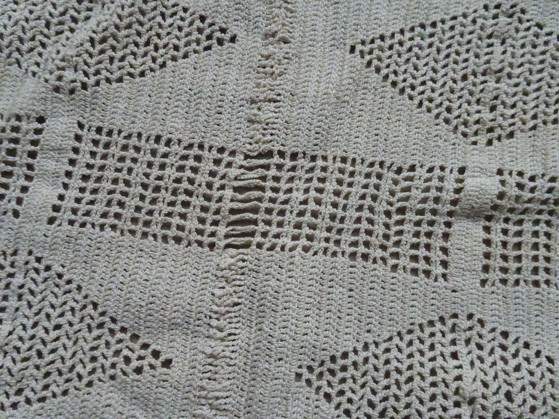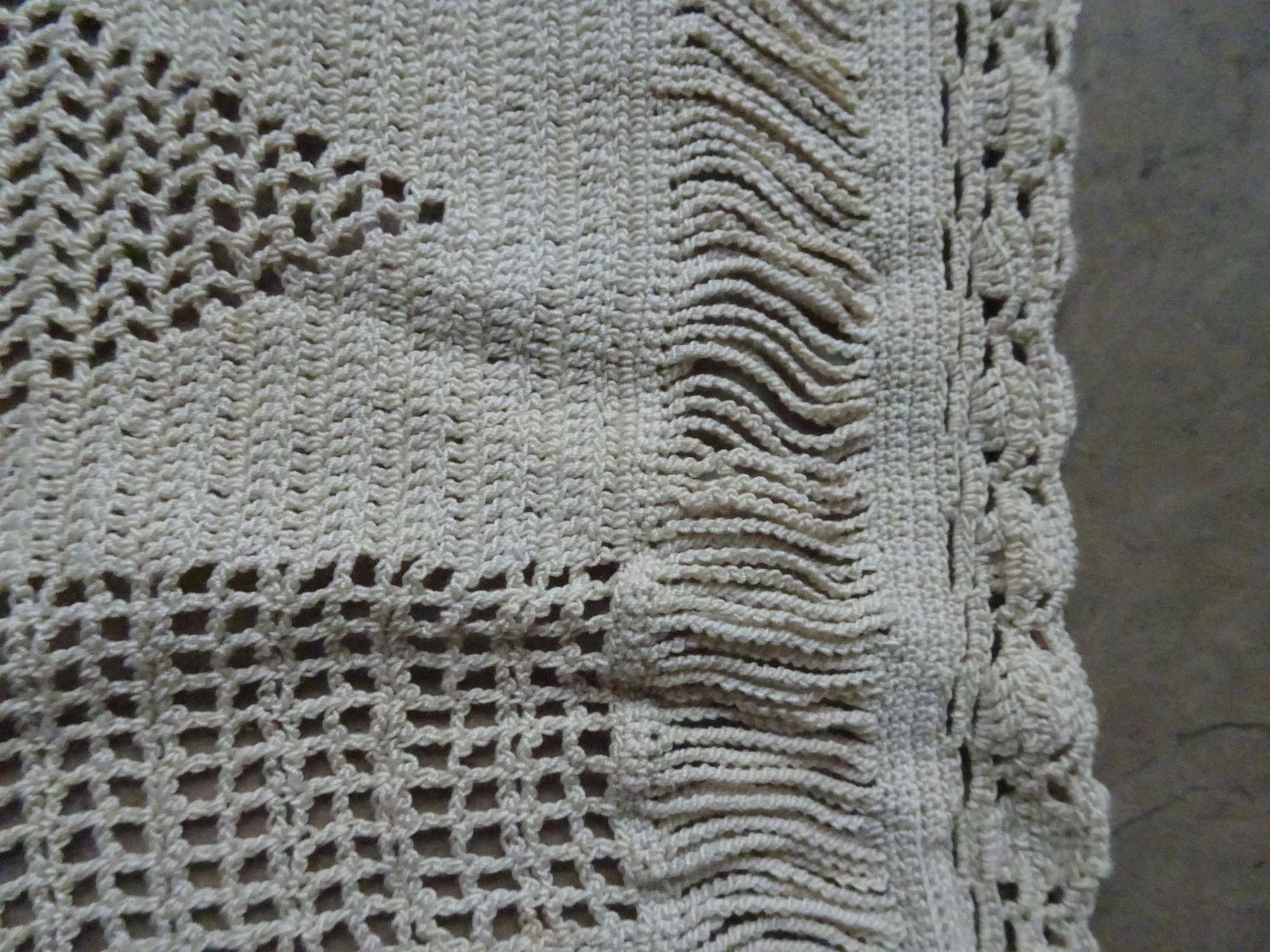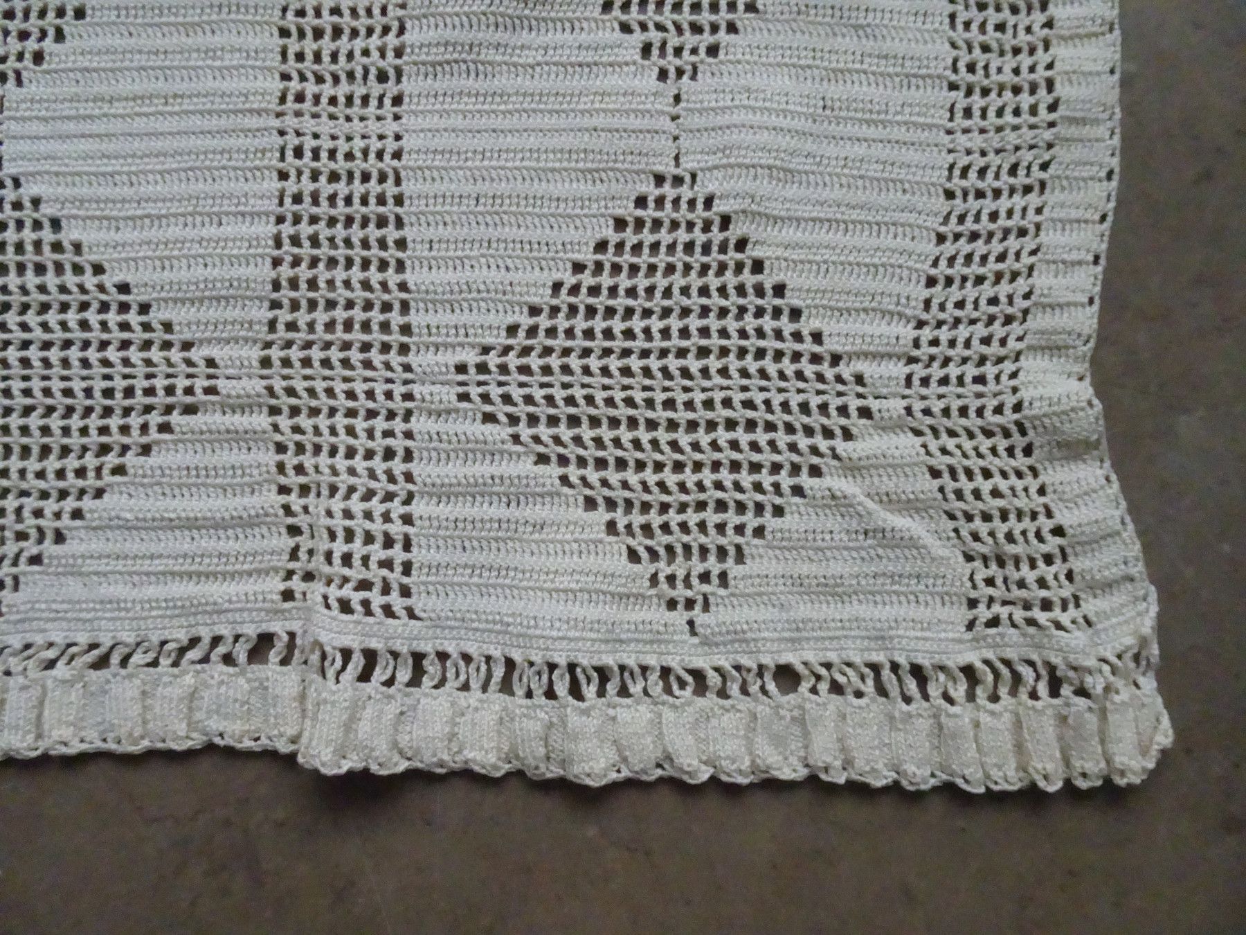 alter Vorhang für Türen mit Fenster Handarbeit 89x91cm gehäkelt fein creme beige