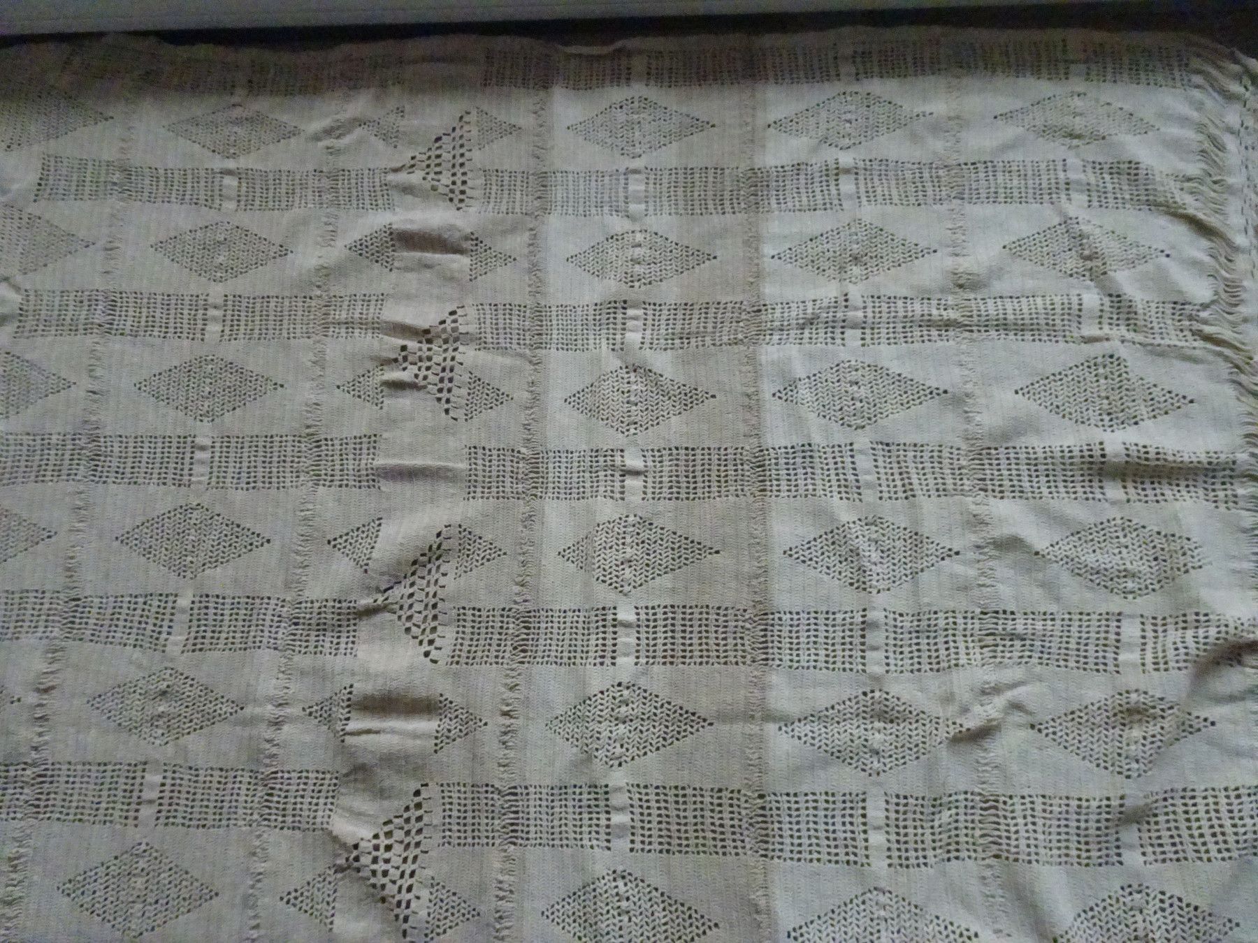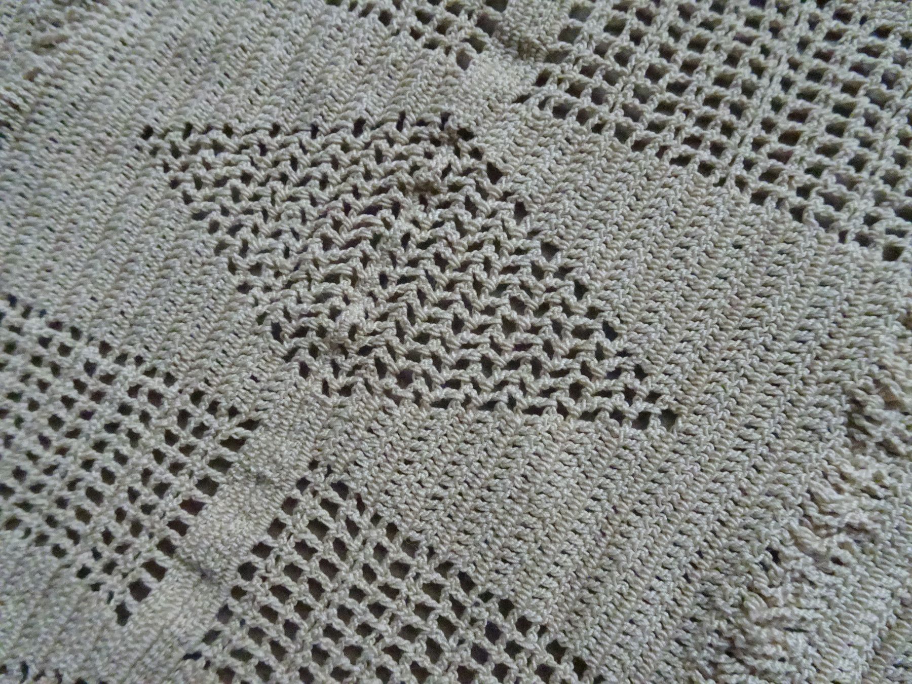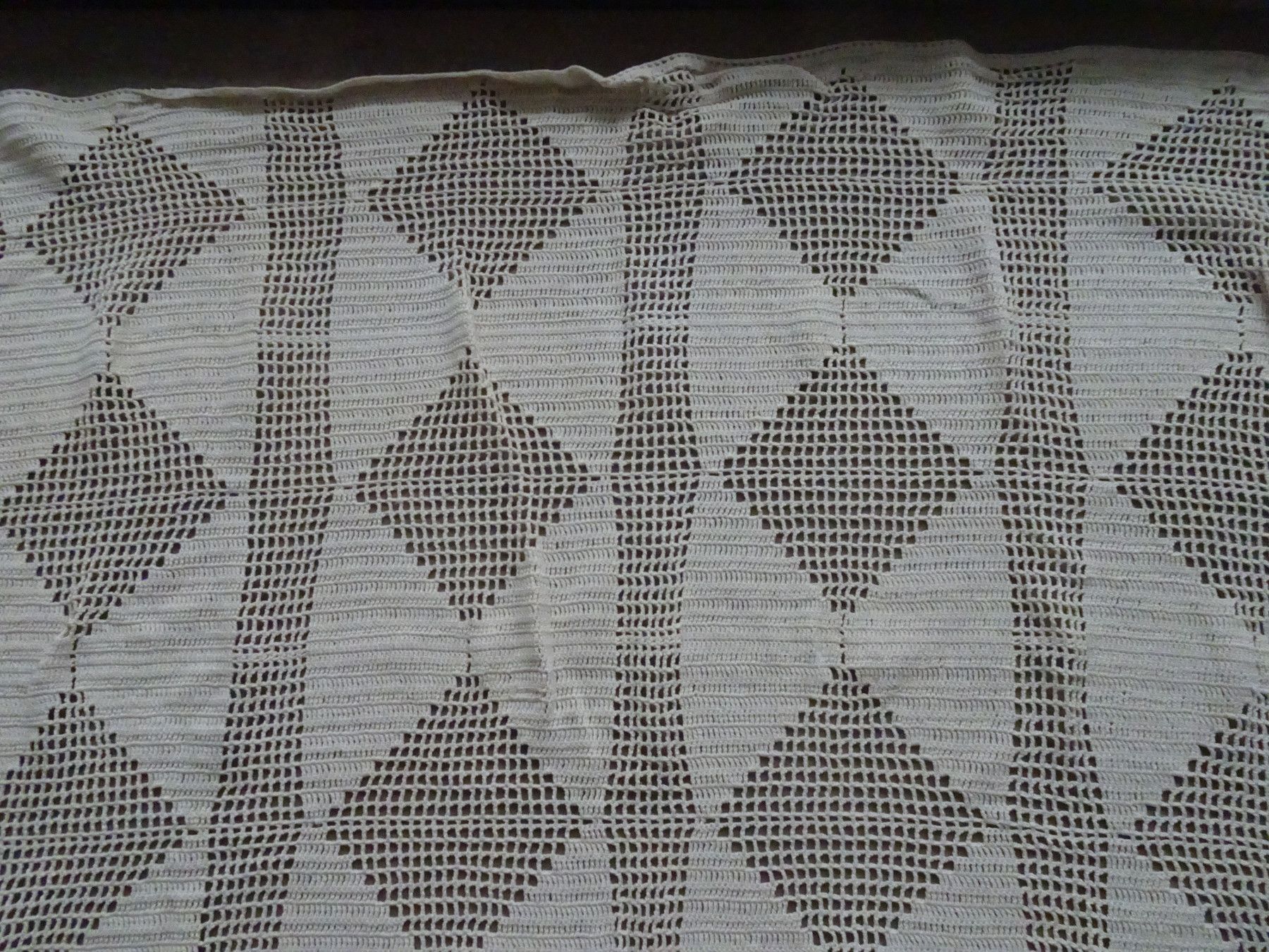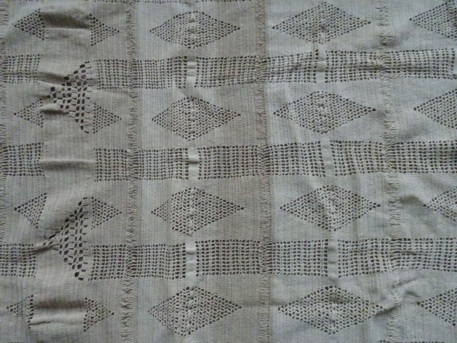 alter Vorhang für Türen mit Fenster Handarbeit 89x91cm gehäkelt fein creme beige