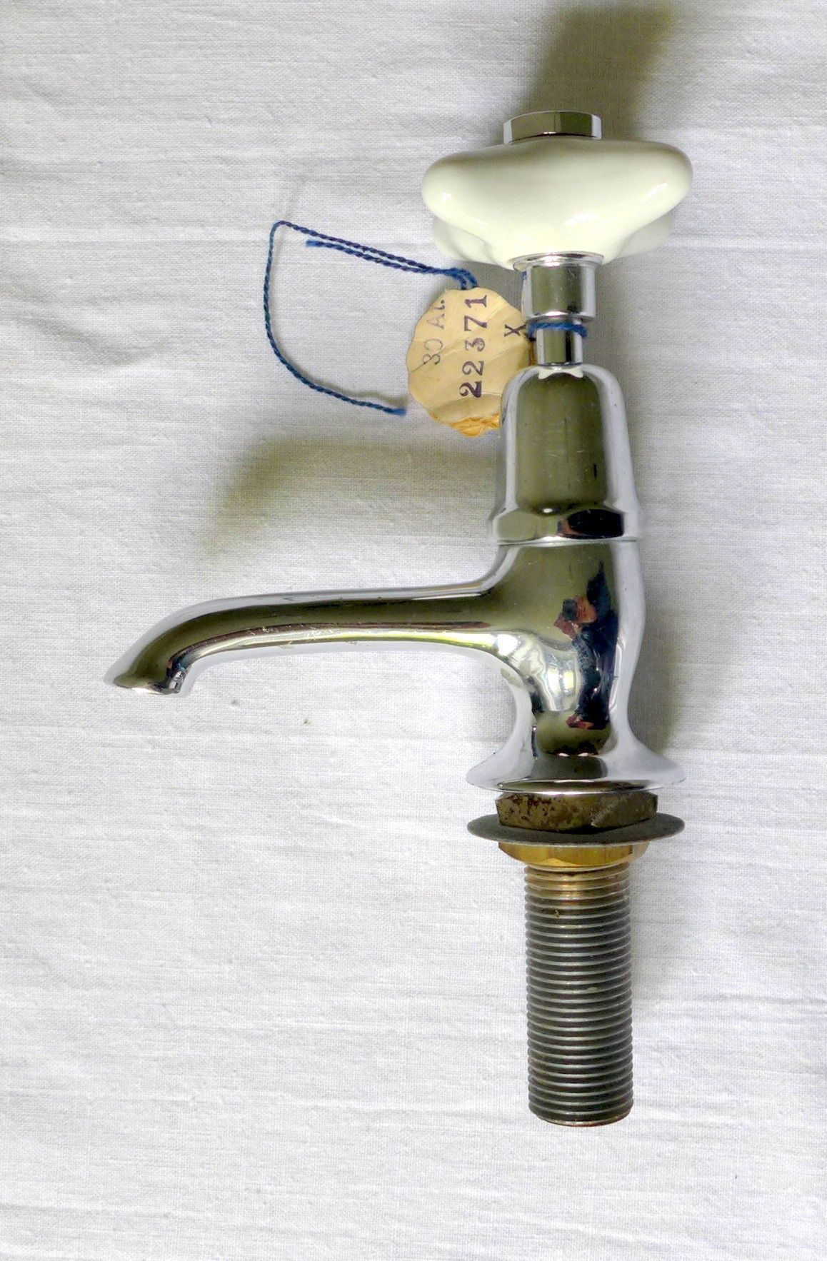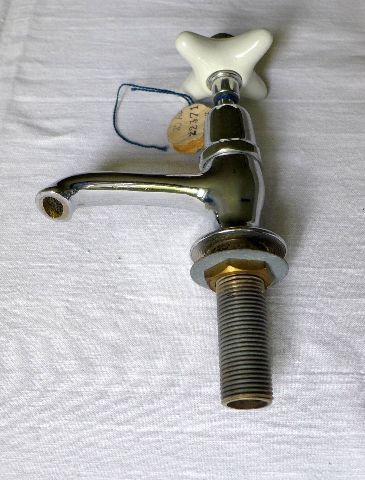 unbenutzter Zustand mit Lagerspuren siehe Fotos , Höhe über Waschbecken ca. 13 cm , Gesammthöhe ca. 19,5 cm , Rohrdurchmesser incl. Gewinde ca. 21 mm , Durchmesser an Waschbeckenauflage ca. 42 mm , sehr alt , wird deshalb nur als Dekoobjekt verkauft , Lichtspiegelungen , Schattenbildung , Farbabweic