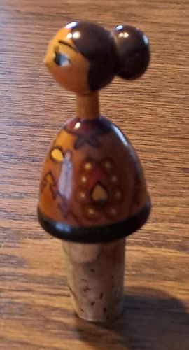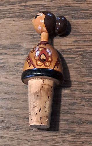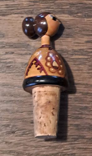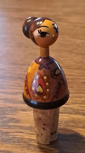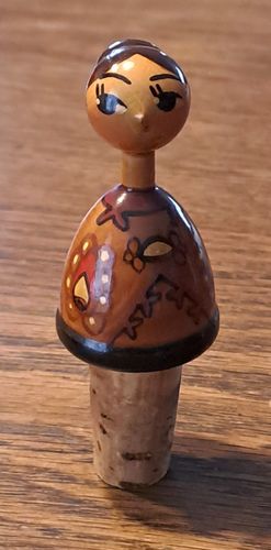 Alter Zierkorken Flaschenkorken Holz Trachten Mädchen Vintage