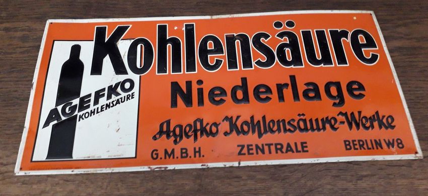 Wunderschönes altes Blechschild AGEFKO Kohlensäure Werke Niederlage G.M.B.H. Zentrale Berlin W8 Gebrauchter guter Zustand siehe Bilder Länge ca.: 51 cm Höhe ca.: 23,5 cm Bitte Beachten: Versand beinhaltet nicht nur Porto, sondern auch Verpackungsmaterial und den Verpackungsservice. Der Verkauf erfol