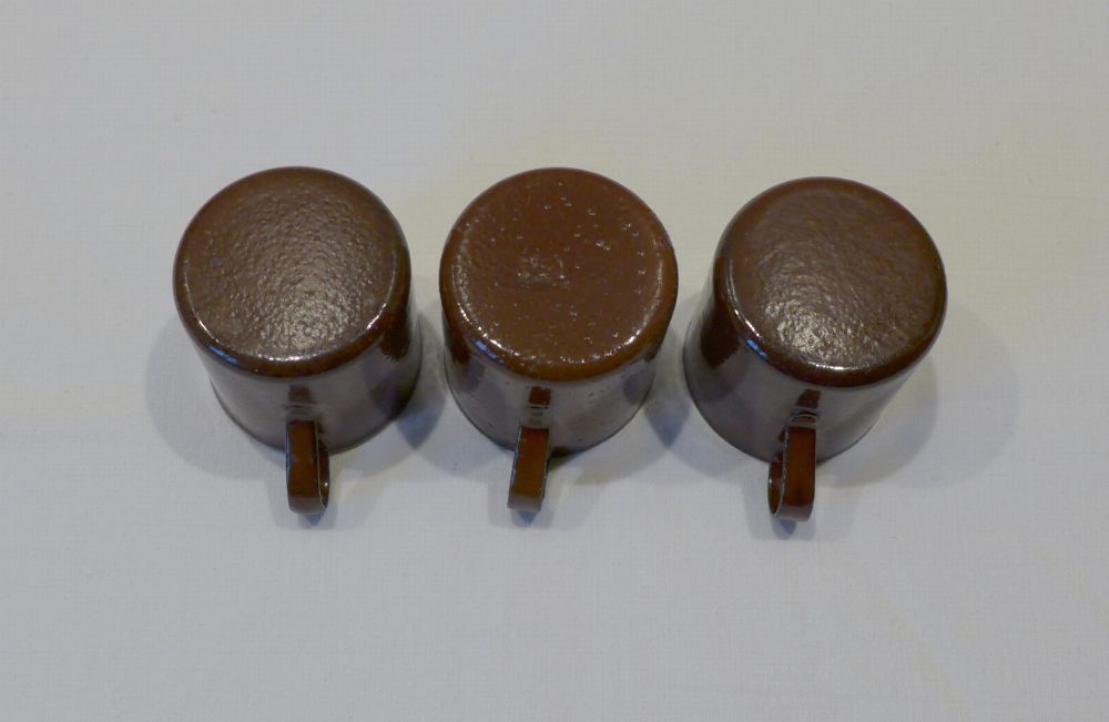 gebrauchter Zustand mit Gebrauchsspuren siehe Fotos , bespielt , 3 Töpfe Tassen braun emailliert , Durchm. ohne Henkel ca. 50 mm , Höhe ca. 47 mm , Sp 109 Achtung ! Nicht für Kinder unter 14 Jahren geeignet ,Sammler - Artikel. original keine Kopie Das die Fotos sind Bestandteil der Artikelbeschreibu