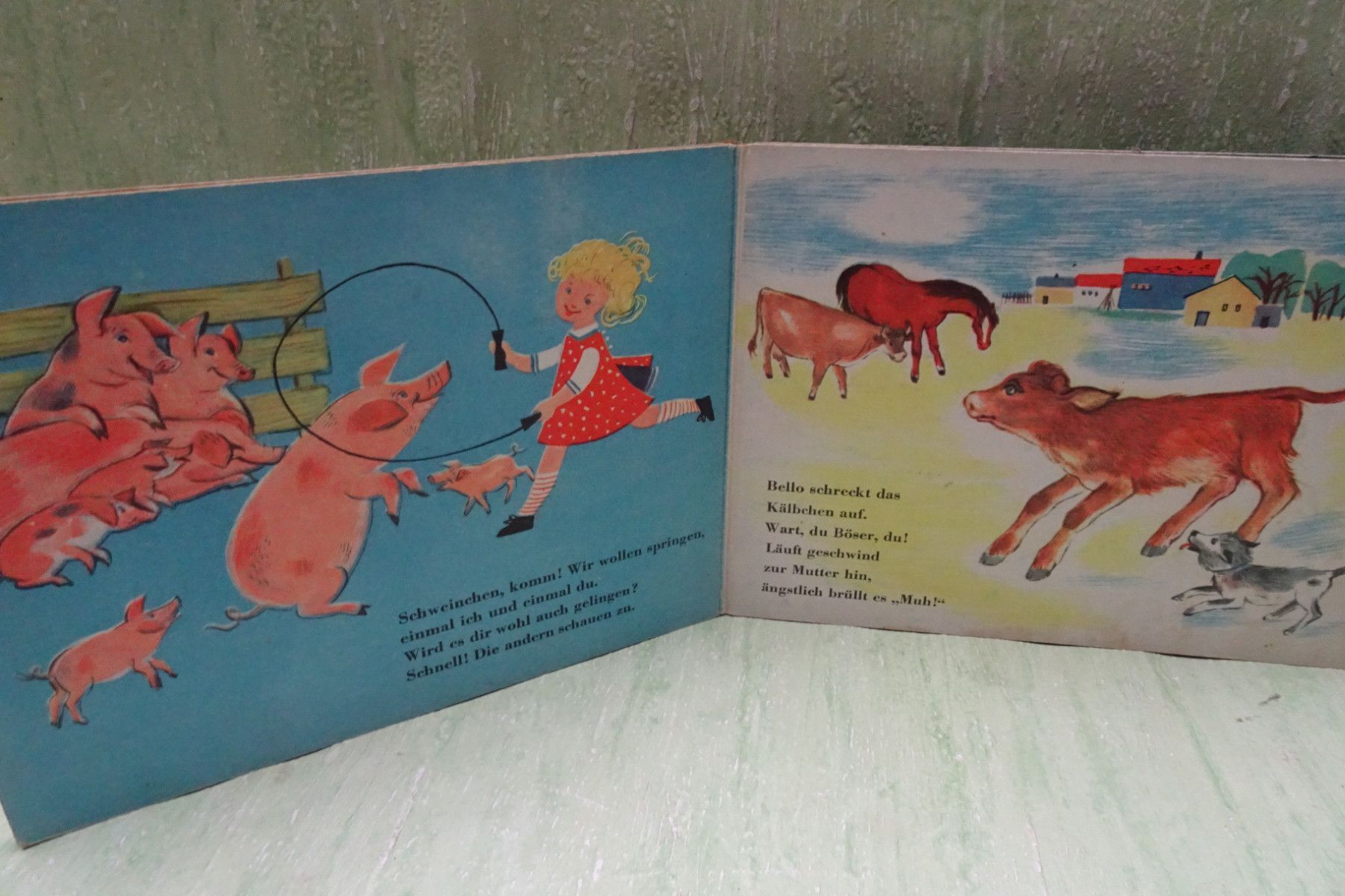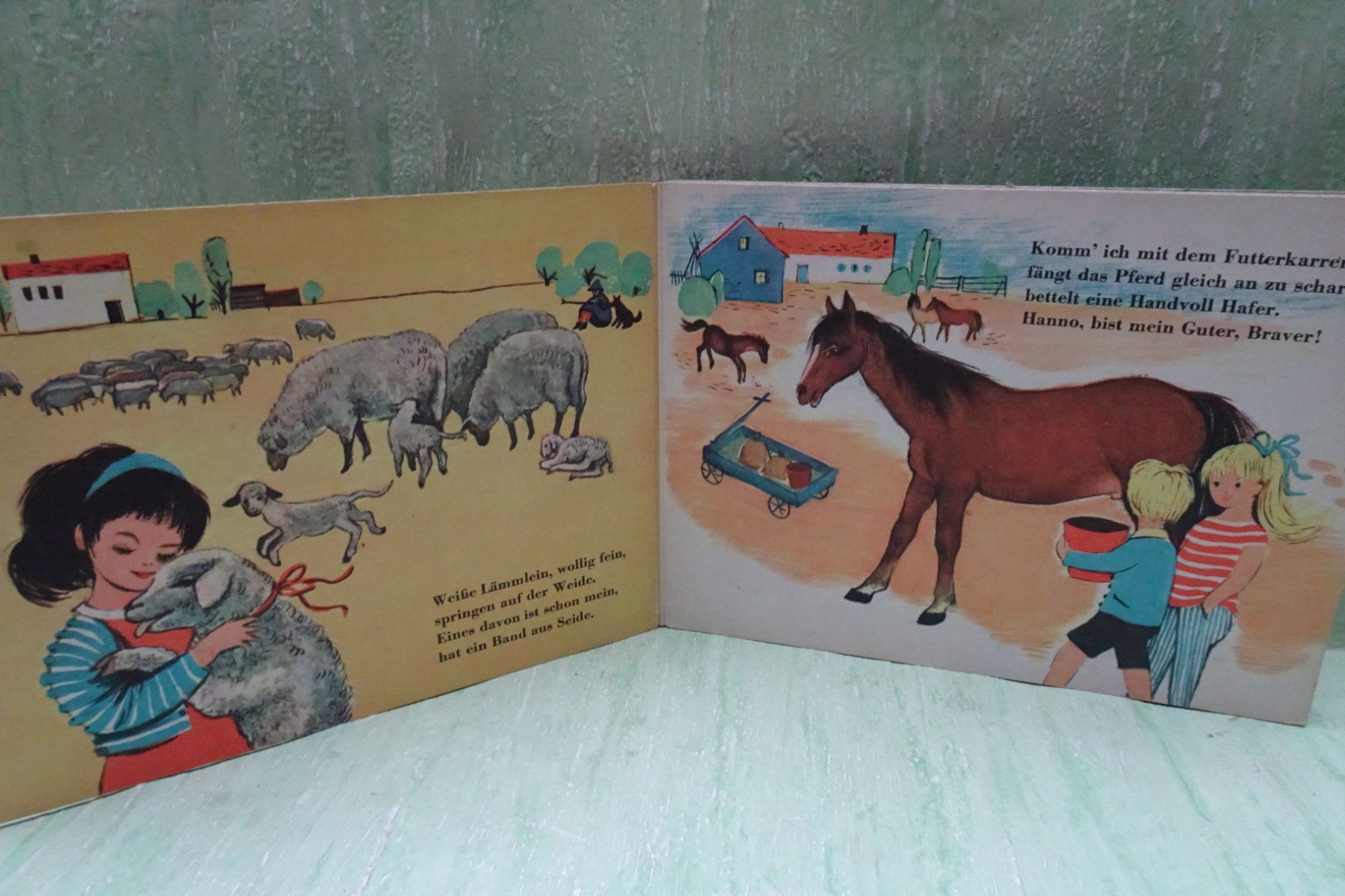 Bilderbücher - Kinderbücher ... Erinnerungen ..... VSK Vereinigte Kunstanstalten Senkeisen 4024 Pappbilderbuch Halbleinen Seiten auf stabilem Karton ca 18,5x14cm 8 Seiten Bilderbücher zum Vorlesen und Selbstlesen Alle meine Tiere Weiße Lämmlein, wollig fein, springen auf der Weide. Eines davon ist s... Mehr