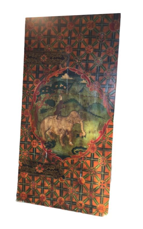 Altes tibentanisches Tuerpanel 1930 aus alter Tuer ohne Rahmen