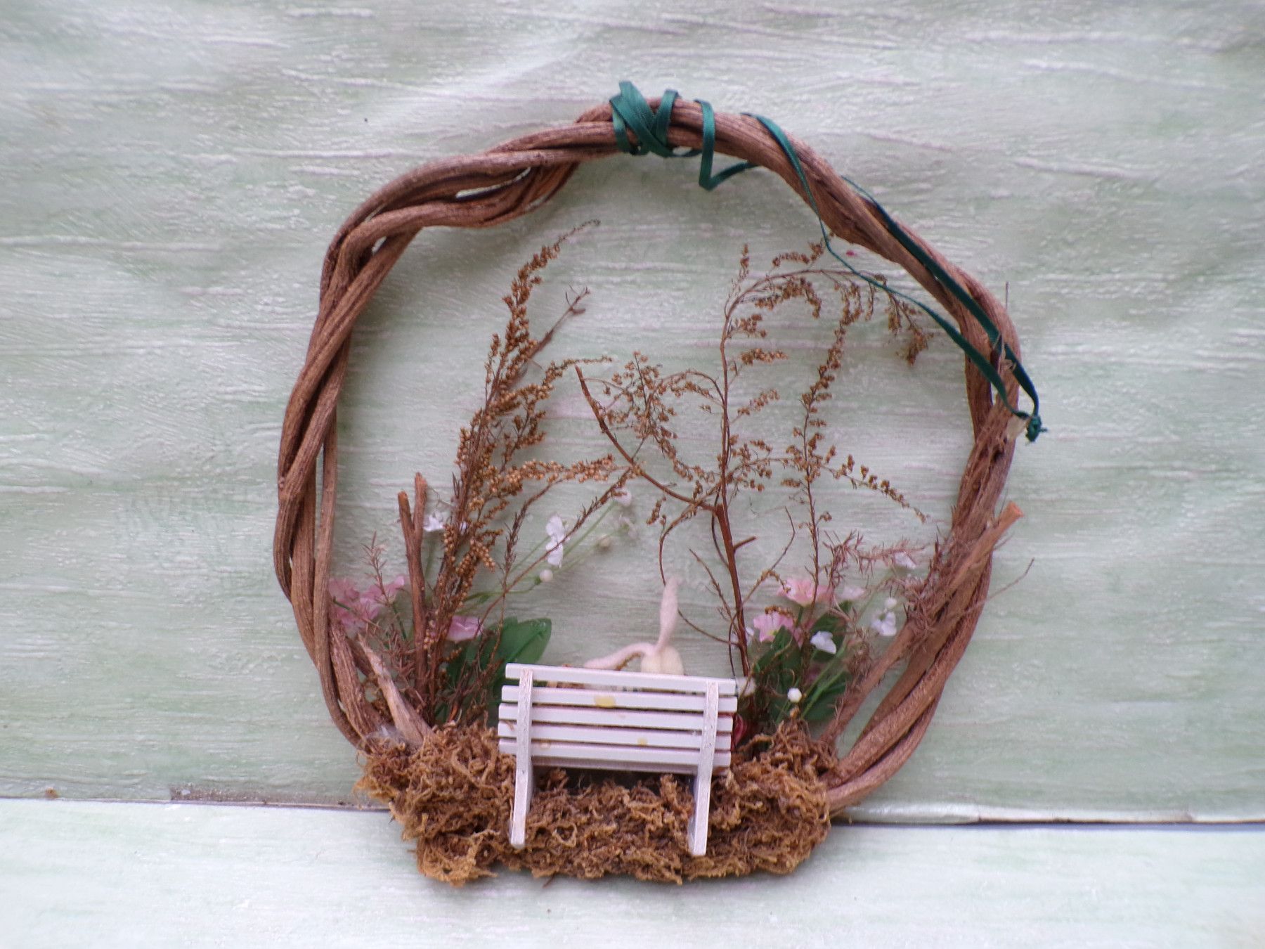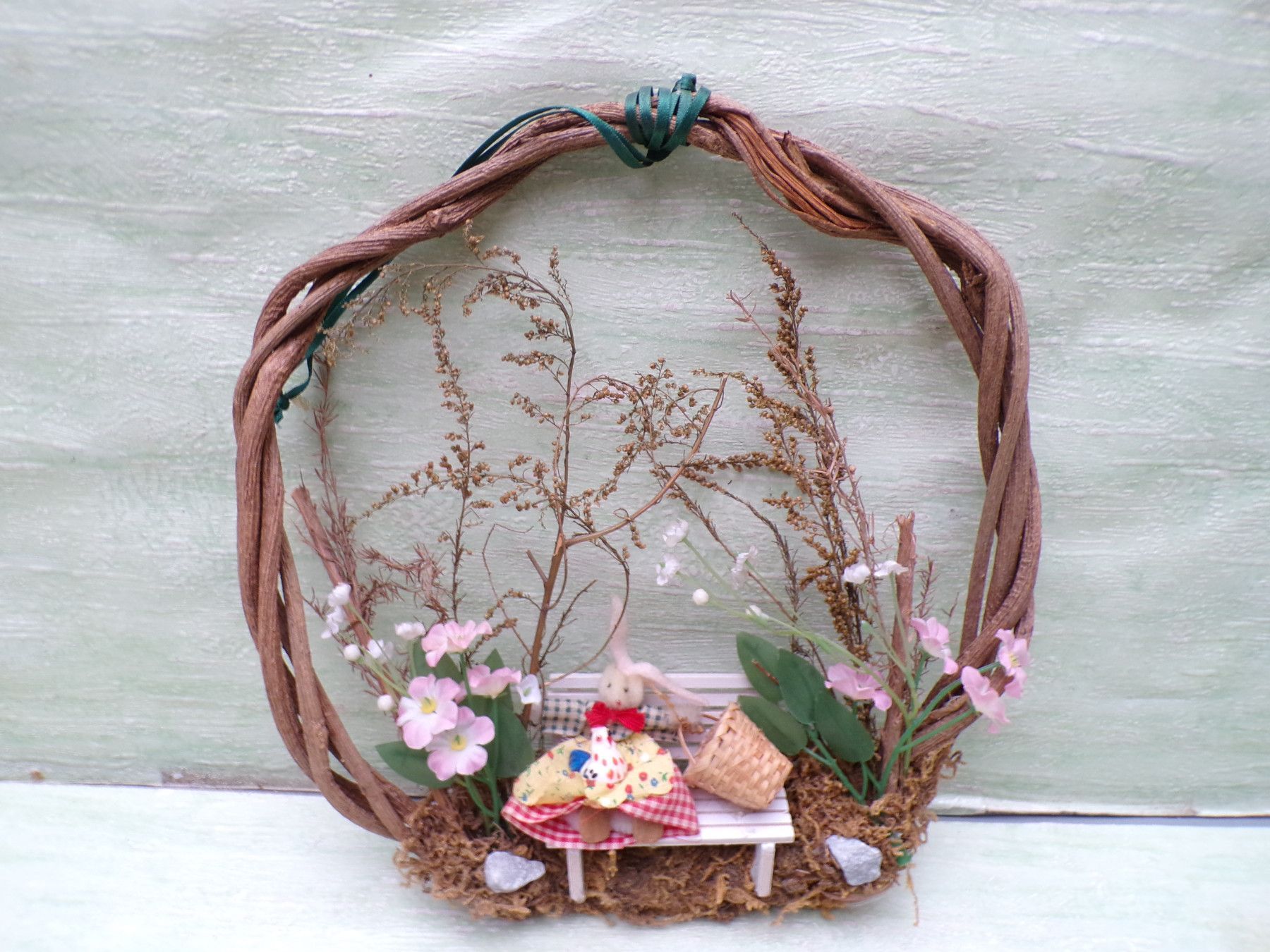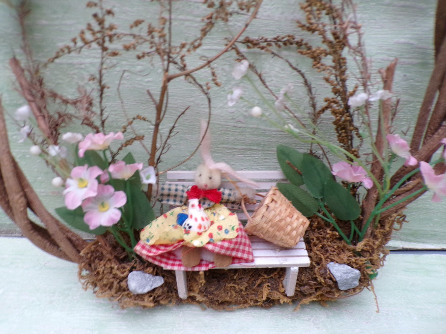 altes Wandbild Türkranz Reisig Weide Osterhase Ostern ca 28cm Dm
