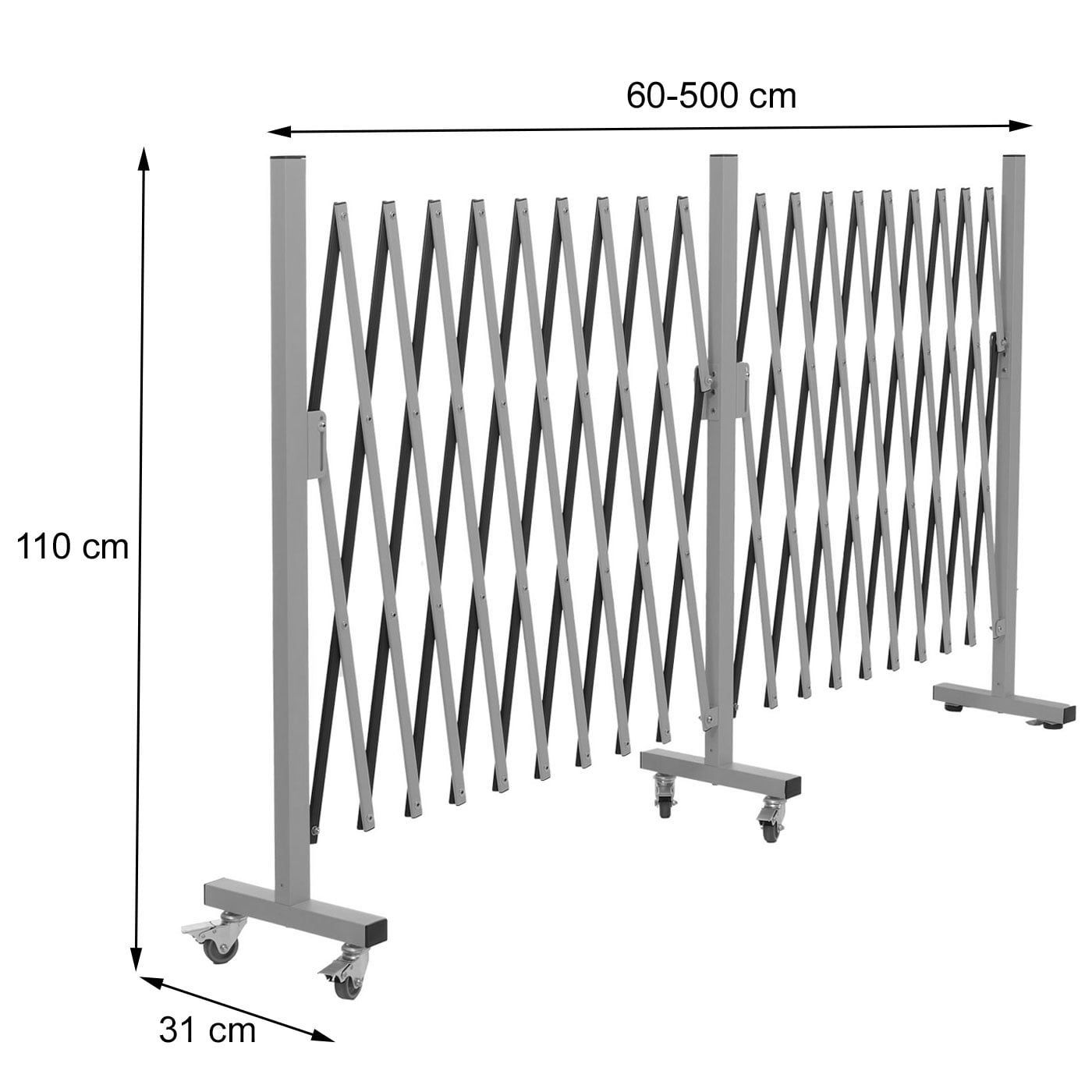 Mendler Alu Absperrgitter HWC-B34, Schutzgitter mit Rollen, ausziehbar 110x60-500cm