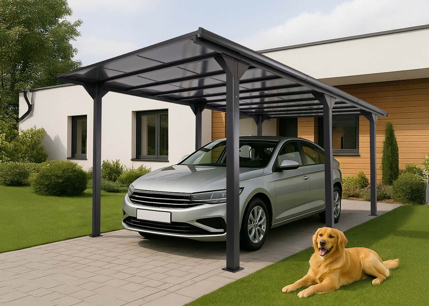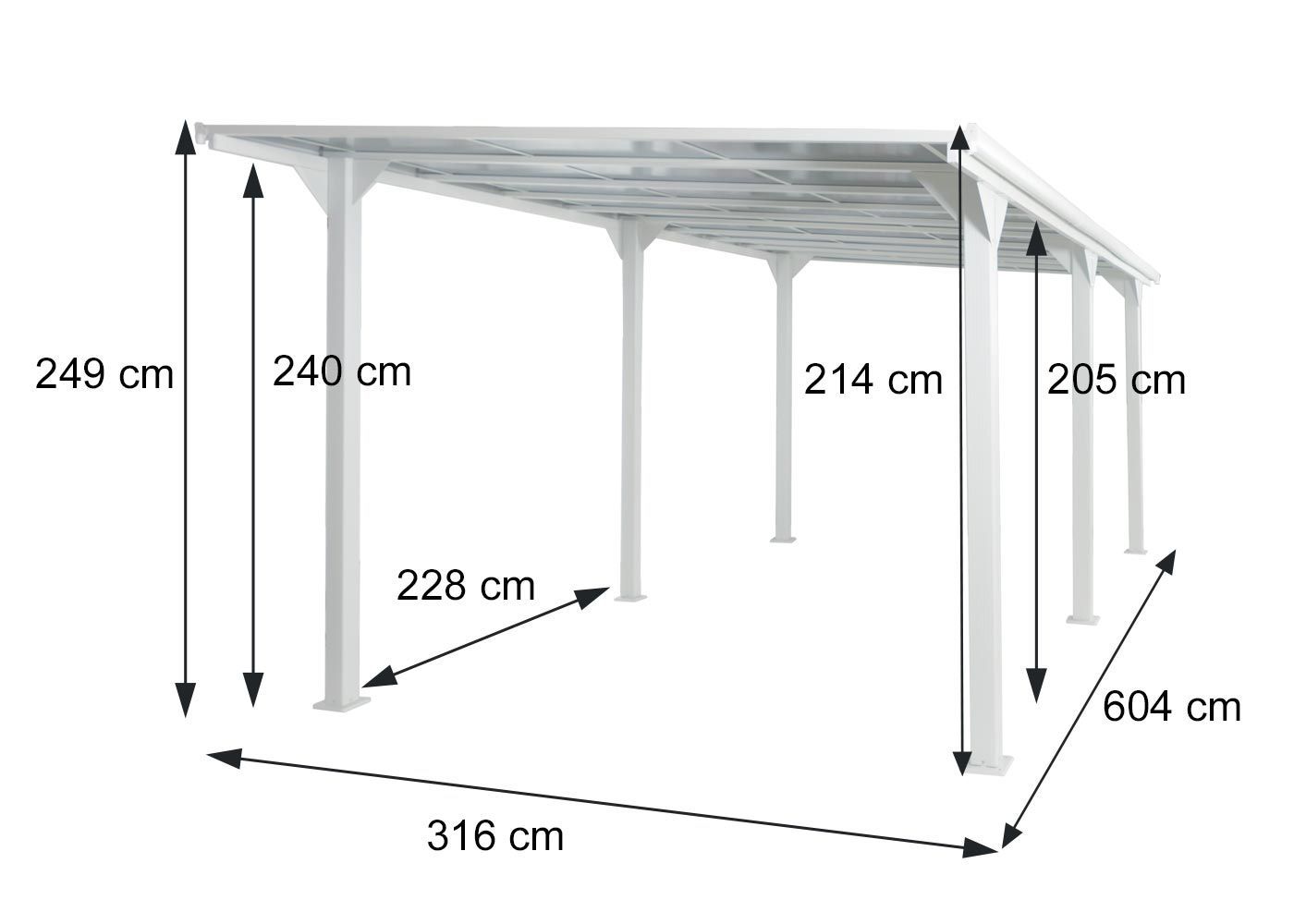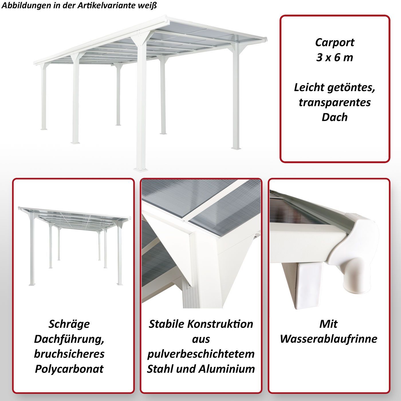 Mendler Alu-Carport HWC-O23, Autoüberdachung Garage, 10cm-Gestell Polycarbonat-Dach 3x6m