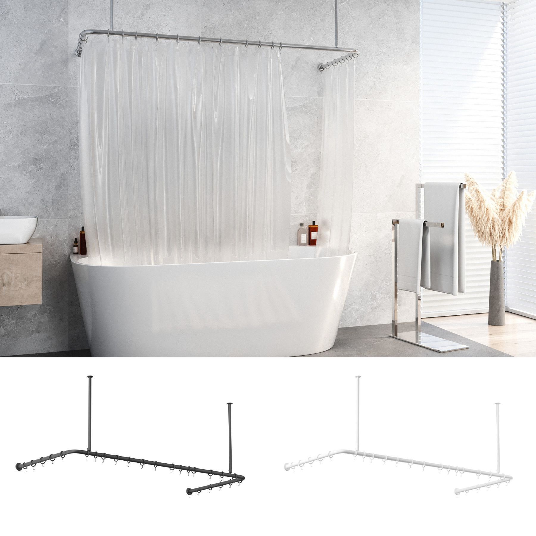 Alu Duschvorhangstange Schwarz 70x165x70 cm barrierefrei inkl. Ringe