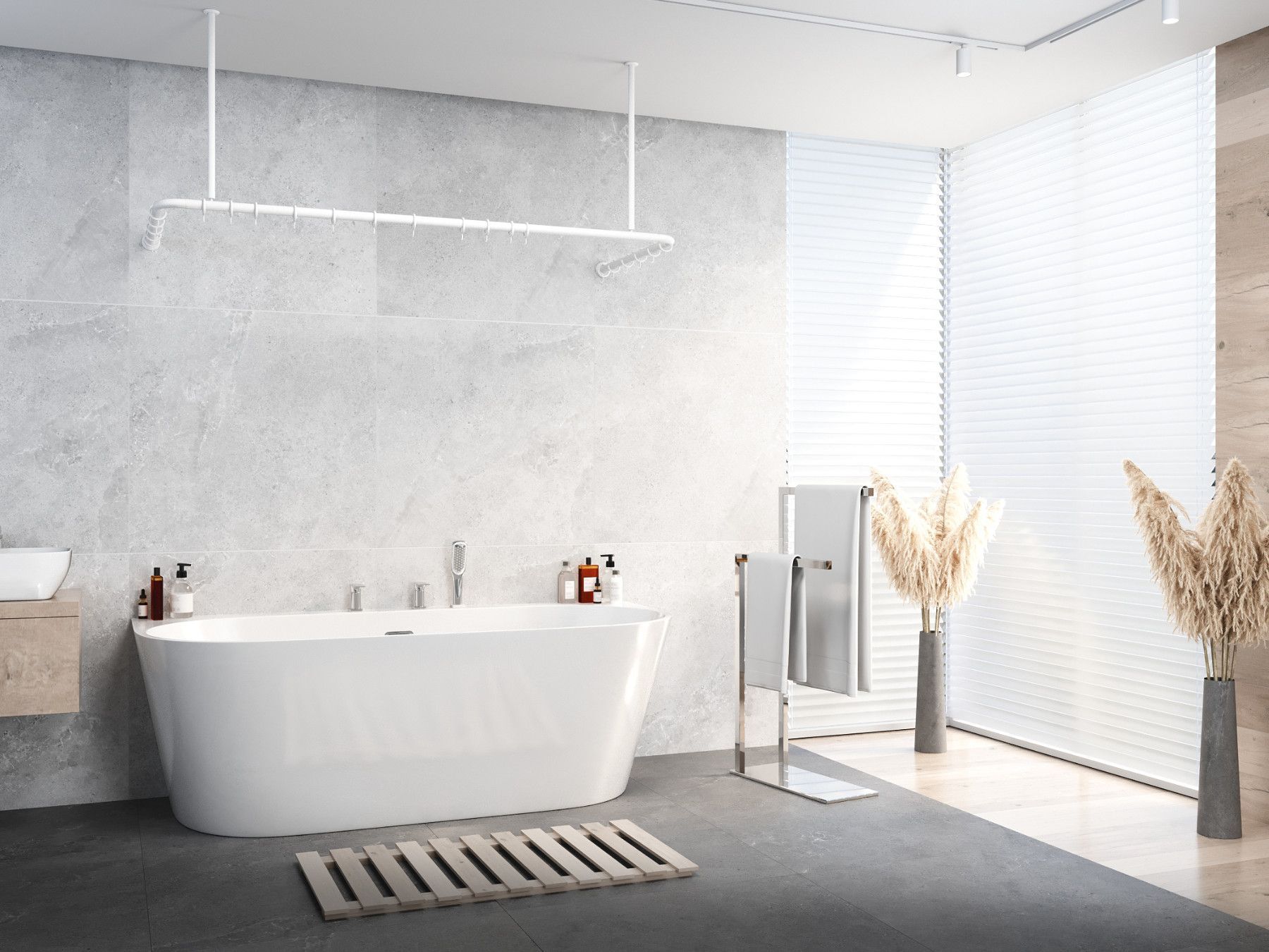 Alu Duschvorhangstange Weiss 70x165x70 cm barrierefrei inkl. Ringe