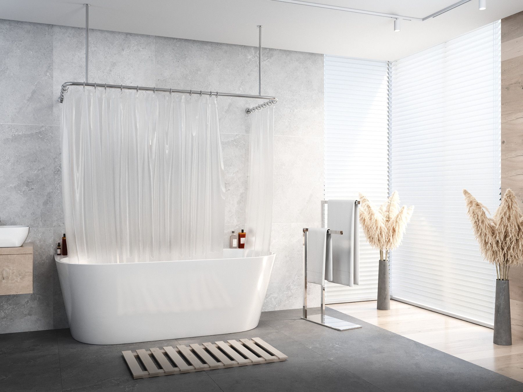 Alu Duschvorhangstange Weiss Schwarz Silber glänzend 70x165x70 cm barrierefrei