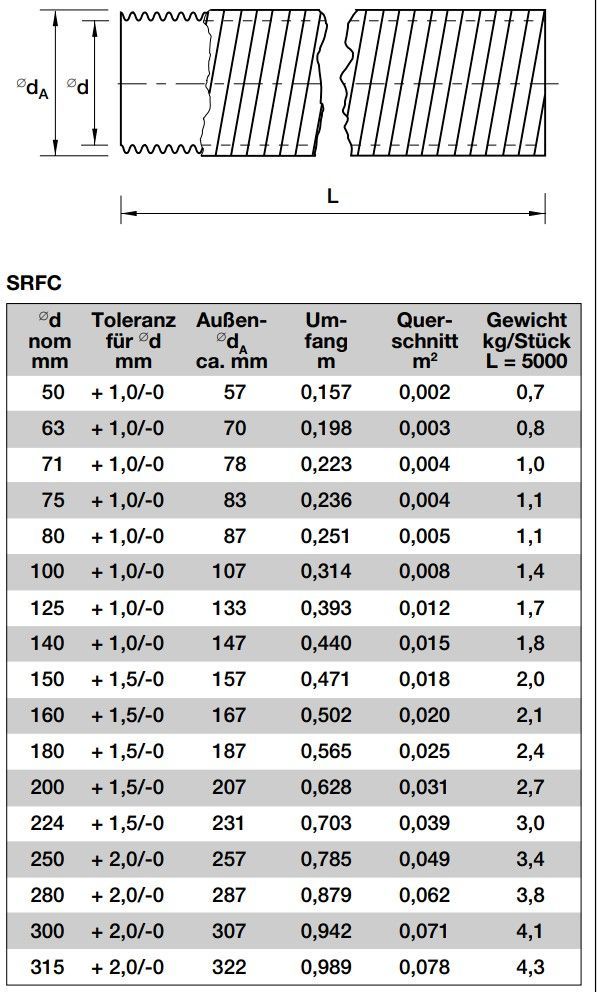 ab DN 355-500 mm Transportlänge 1,2 m gesamt Länge 3m