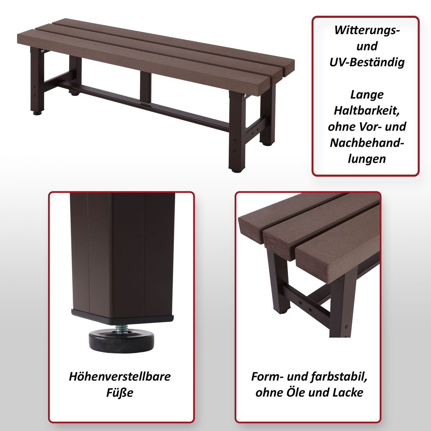 Mendler Alu Gartenbank HWC-K60, Bank Parkbank Sitzbank Balkonbank, wetterfest WPC 120cm