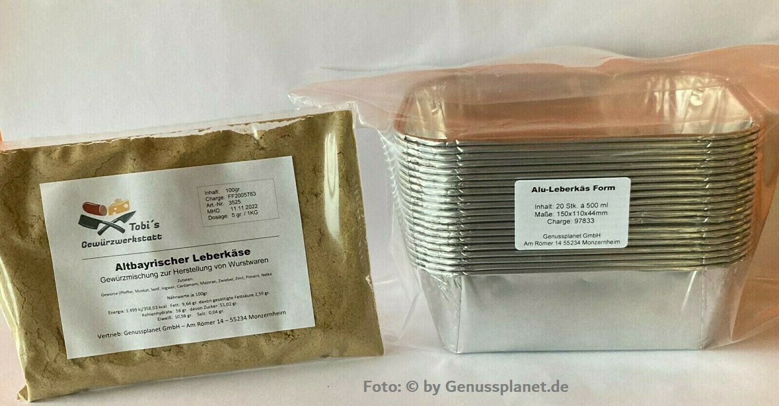 Alu-Leberkäsform 20 Stk. 150x110X44 mm & Altbayrischer Leberkäse Gewürzmischung