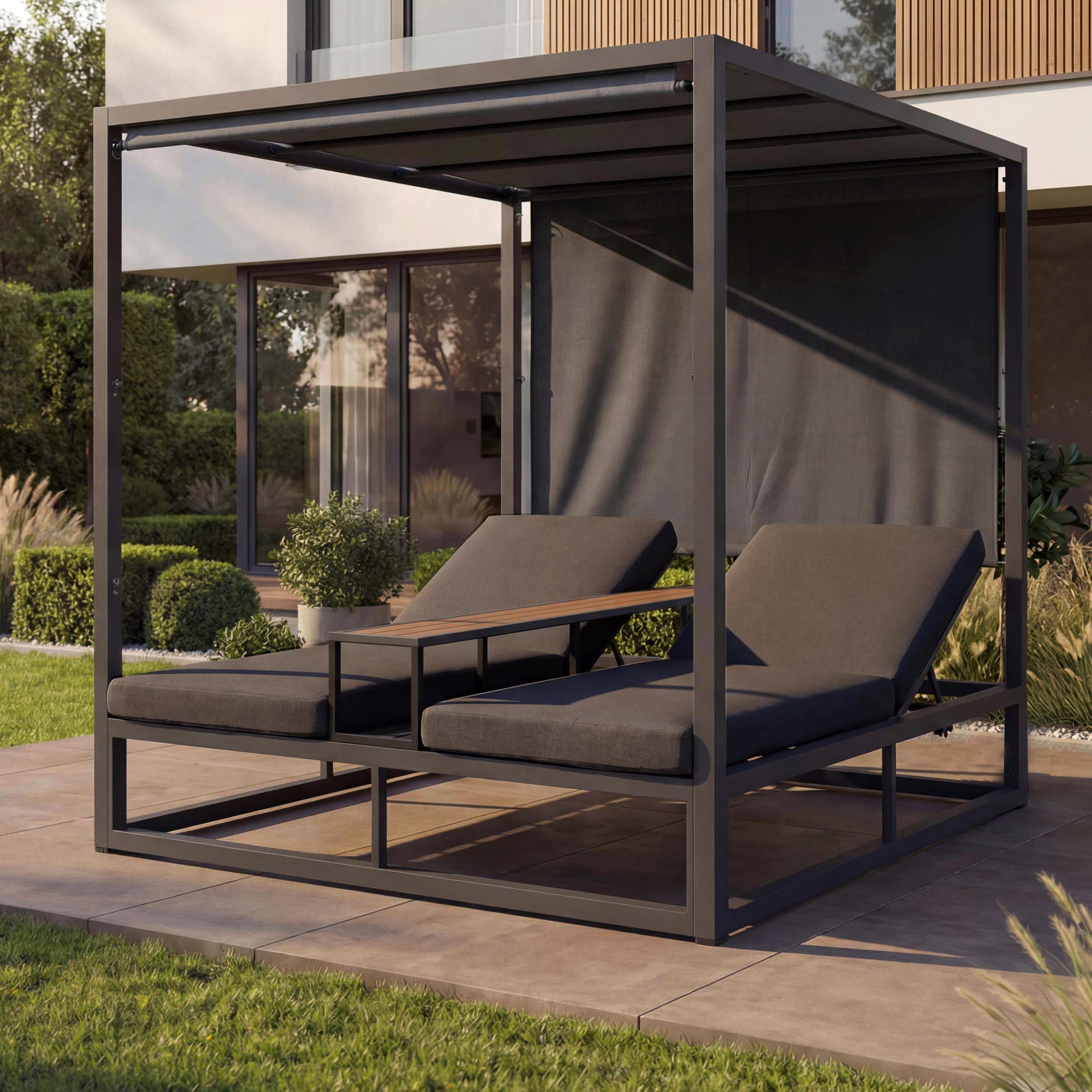 Mendler Alu Lounge-Gartenliege HWC-P81, Sonnenliege Daybed, 10cm-Polster 220g/m²