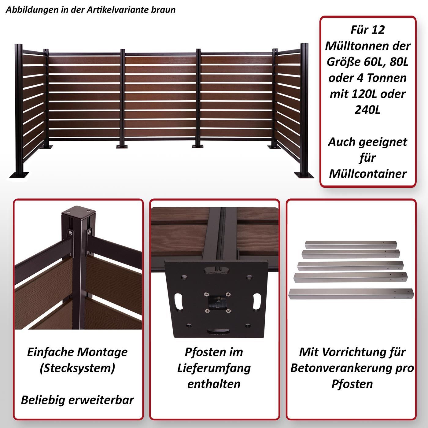 • Alu Mülltonnen-Zaun HWC-K57, Mülltonnenverkleidung, Holzoptik erweiterbar