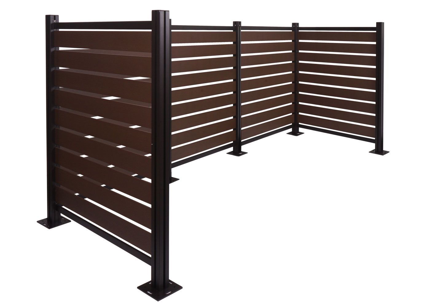 • Alu Mülltonnen-Zaun HWC-K57, Basiselement, Holzoptik erweiterbar 130x110x6cm