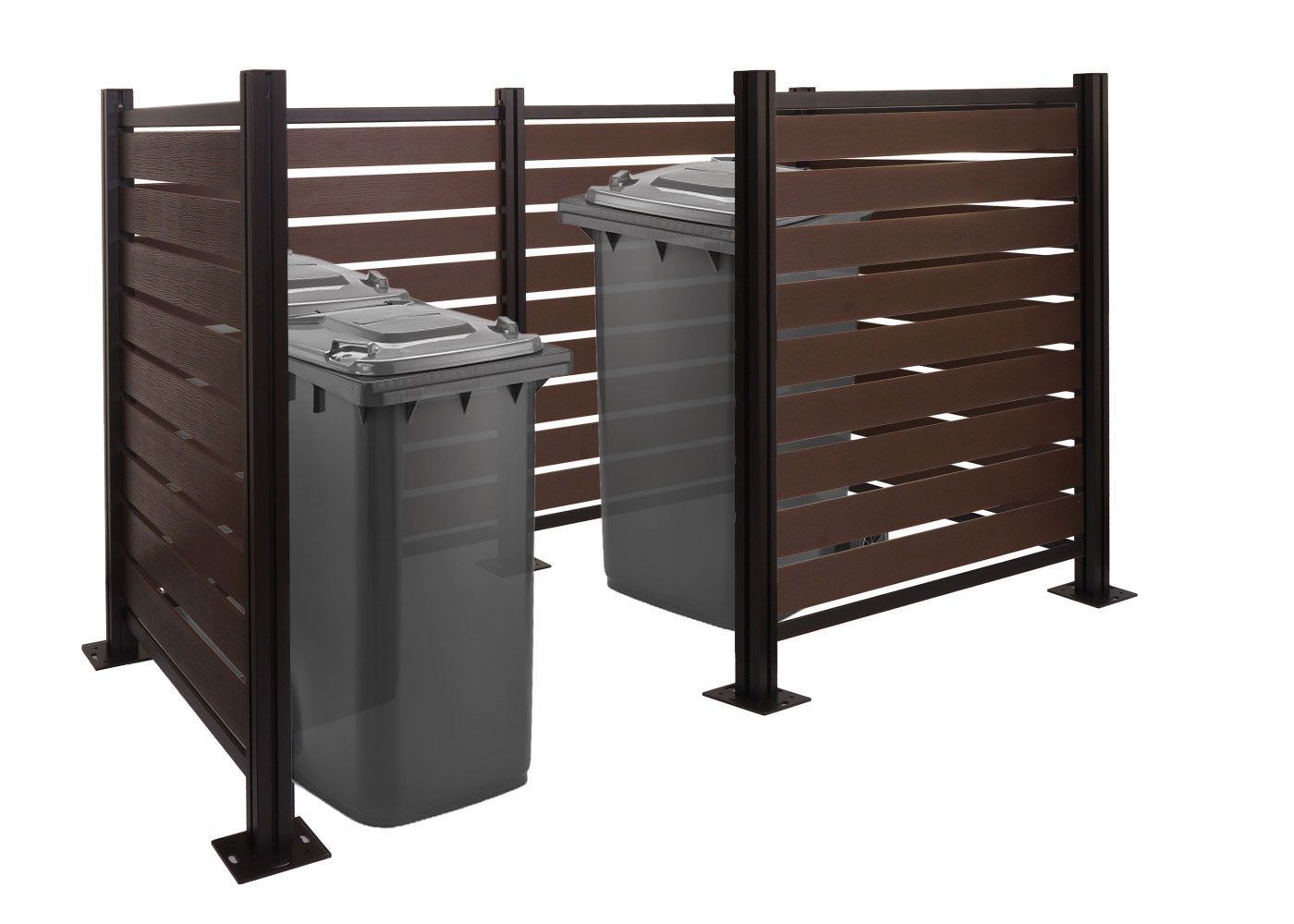 Mendler Alu Mülltonnen-Zaun HWC-K57, Mülltonnenverkleidung, Holzoptik erweiterbar