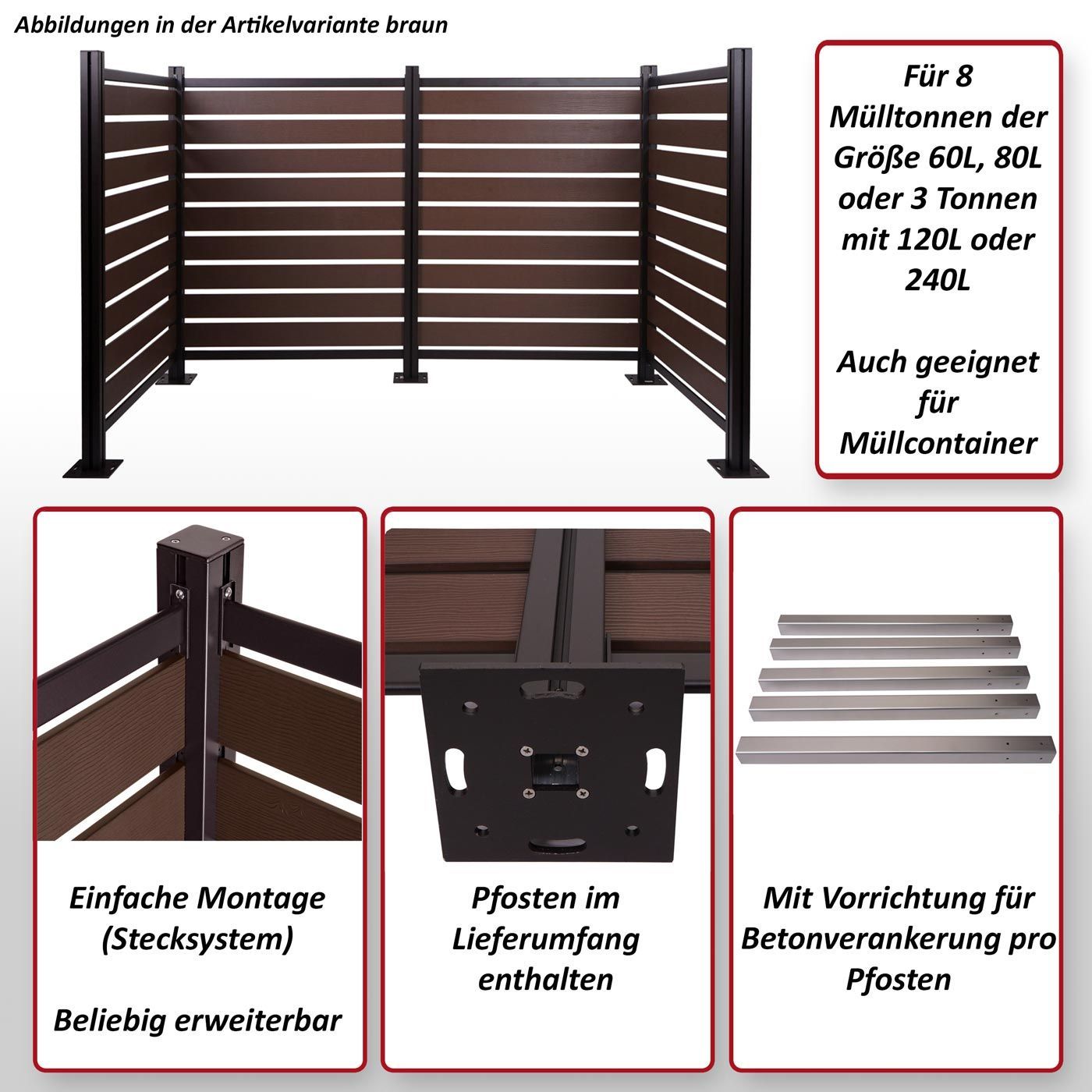 Mendler Alu Mülltonnen-Zaun HWC-K57, Mülltonnenverkleidung, Holzoptik erweiterbar
