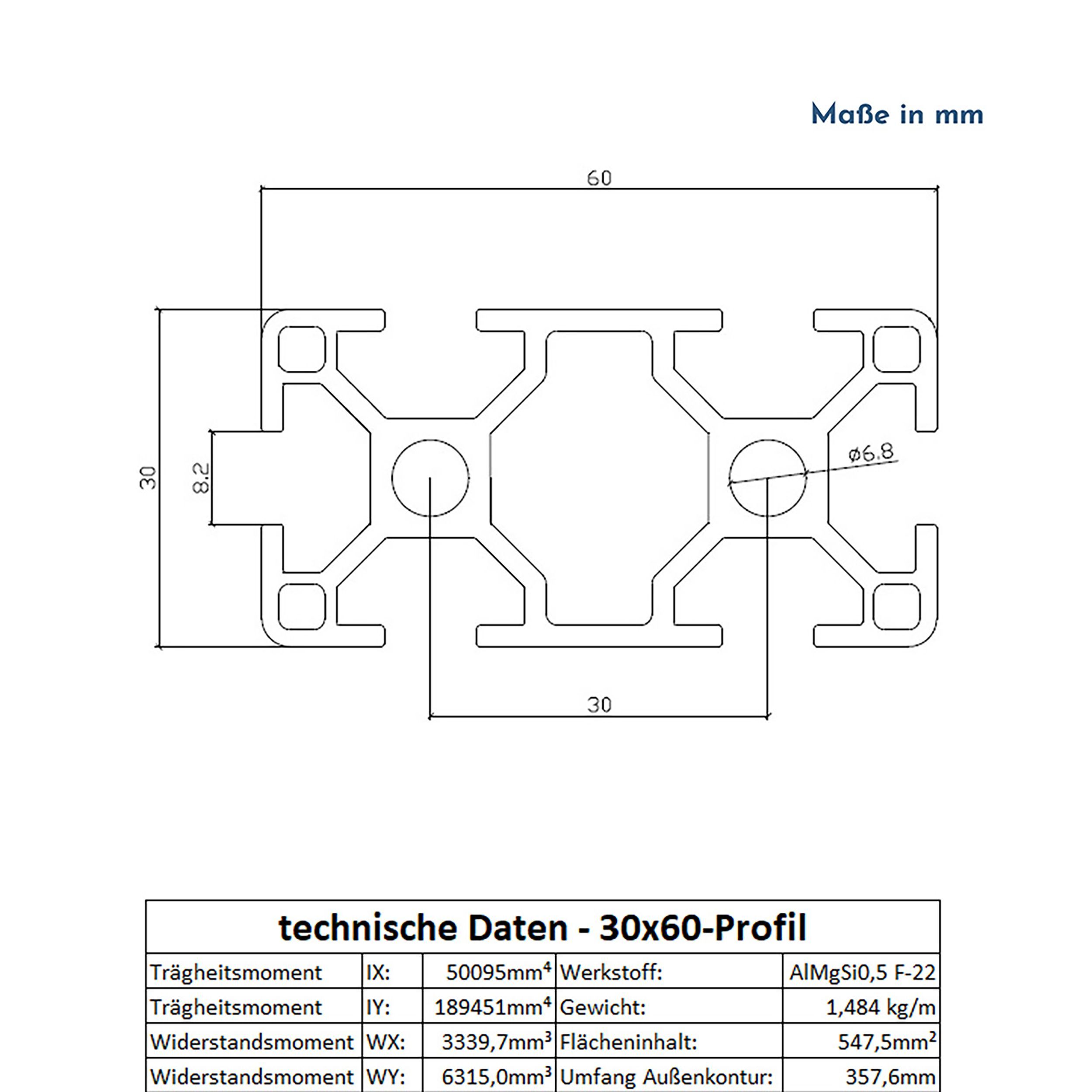ALU Profil Aluprofil 30x60mm Nut 8 Aluminium Systemprofil Typ I 100mm-2000mm