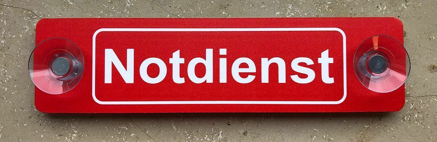 ALU-Schild mit Saugnapf: Notdienst 5x20cm, fürs Auto