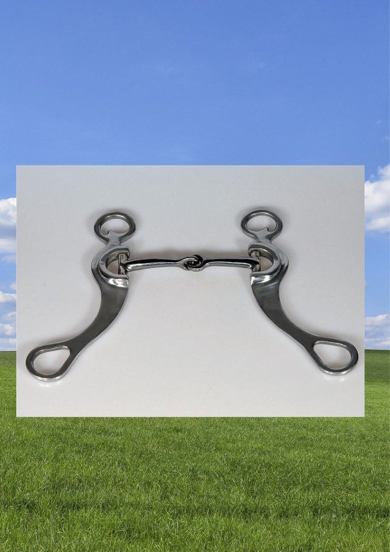 Alu Snaffle with Shanks - FG Kollektion Shank Snaffle with Copper Inlay Alu Shanks Mundstück mit Kupfereinlagen und sweet Iron Weite: 12,7 cm Bitte beachten Sie : das Mundstück besteht aus sogenanntem sweet iron und wird je nach Gebrauch früher oder später rosten . Dies ist gewollt und kein Garantie