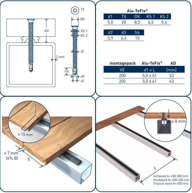 Alu-TeFix® Edelstahl Bohrschraube - ohne Vorbohren und Vorsenken