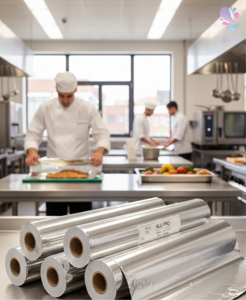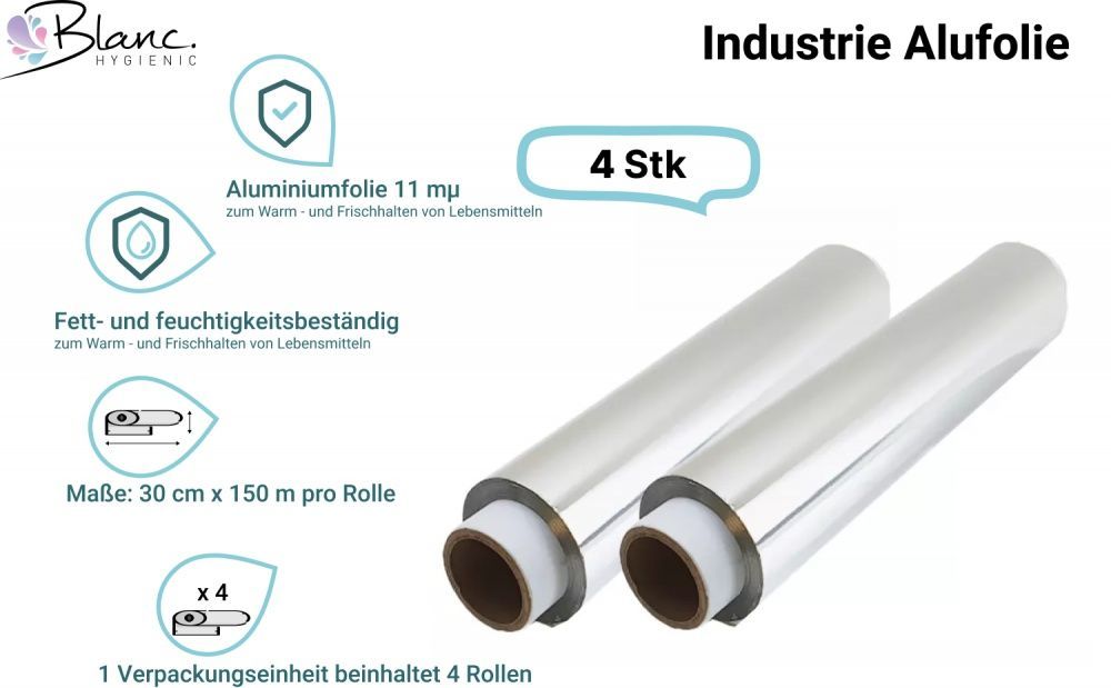 Alufolie 30cm lose Großrolle, 4 Rollen, 4800g, 600m, 11my, zum Warm - und Frischhalte