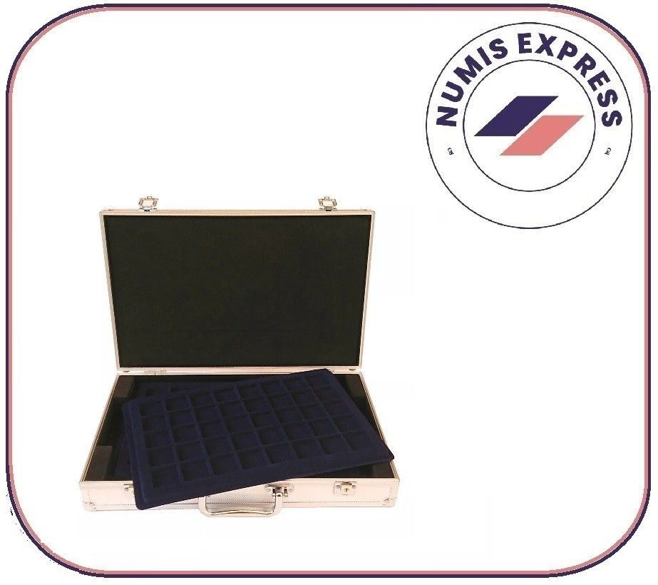 Aluminium Alu Münzkoffer mit 4 blauen Tableaus für 160 Münzen