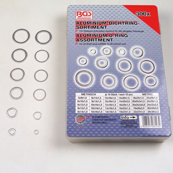 BGS Aluminium Dichtring-Sortiment, Aluminiumdichtungen 300-tlg