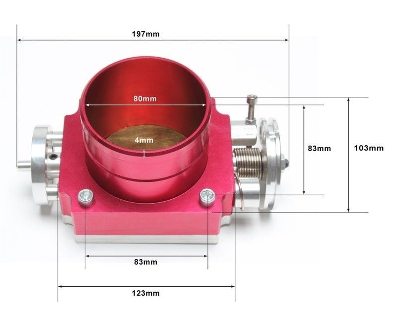 Aluminium Drosselklappe 80MM ROT MIT Adapterplatte ZUM Schrauben / SCHWEIßEN