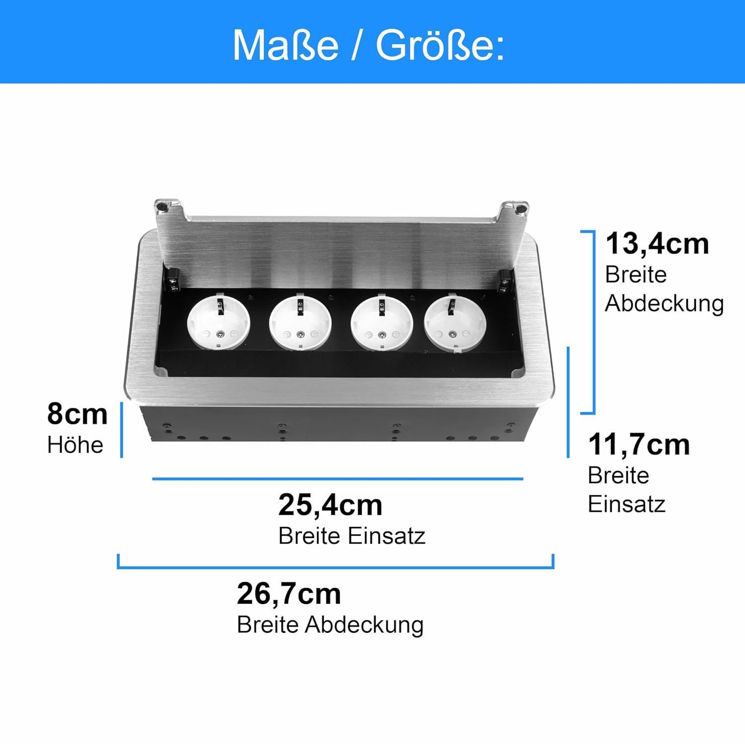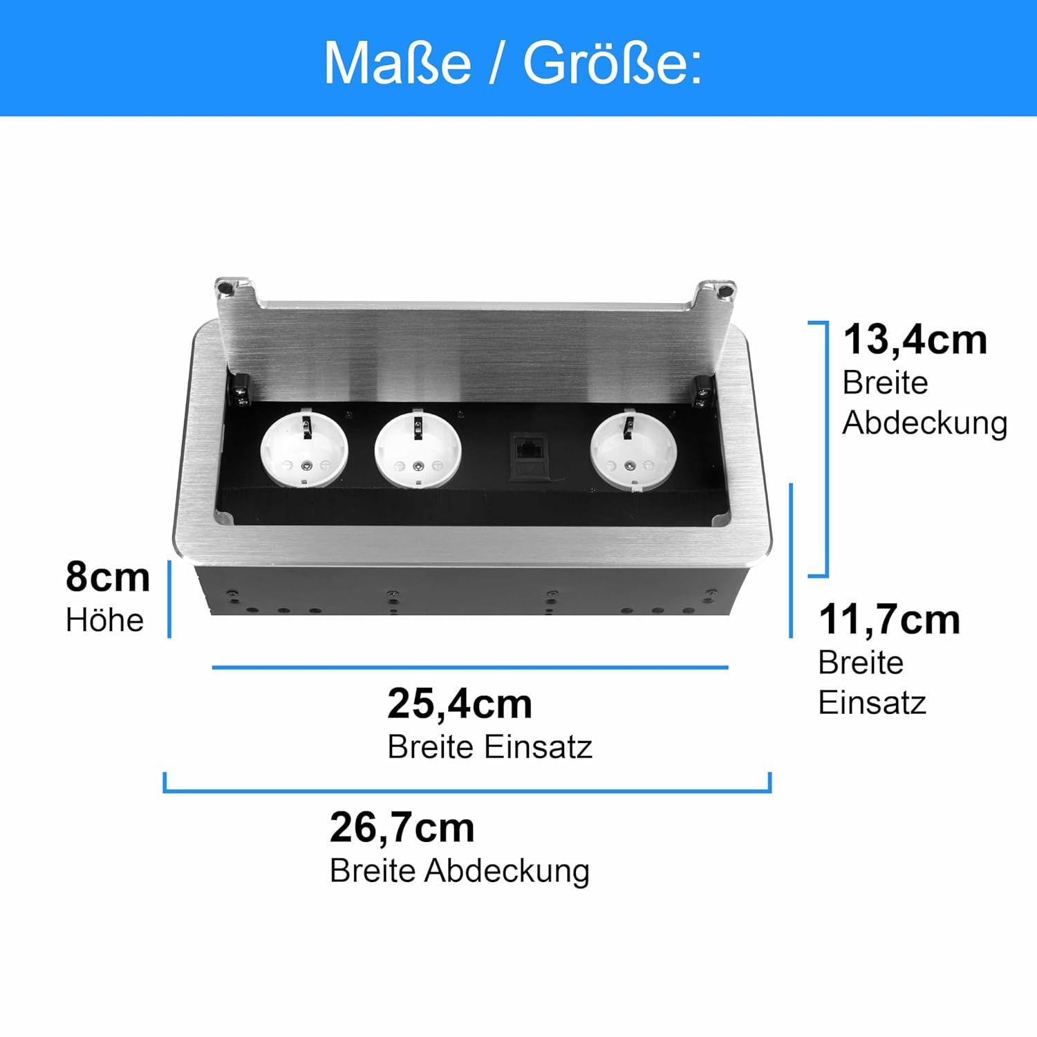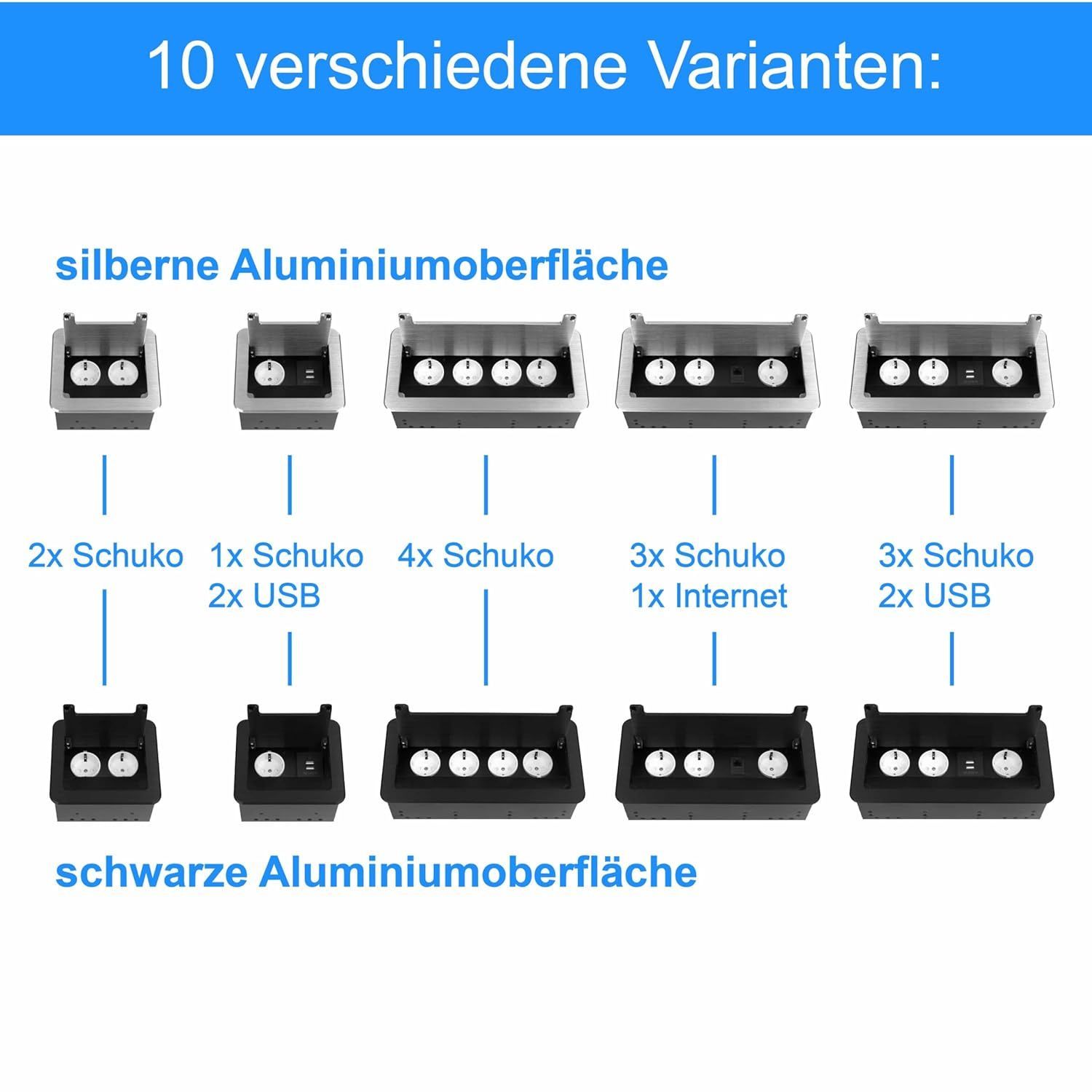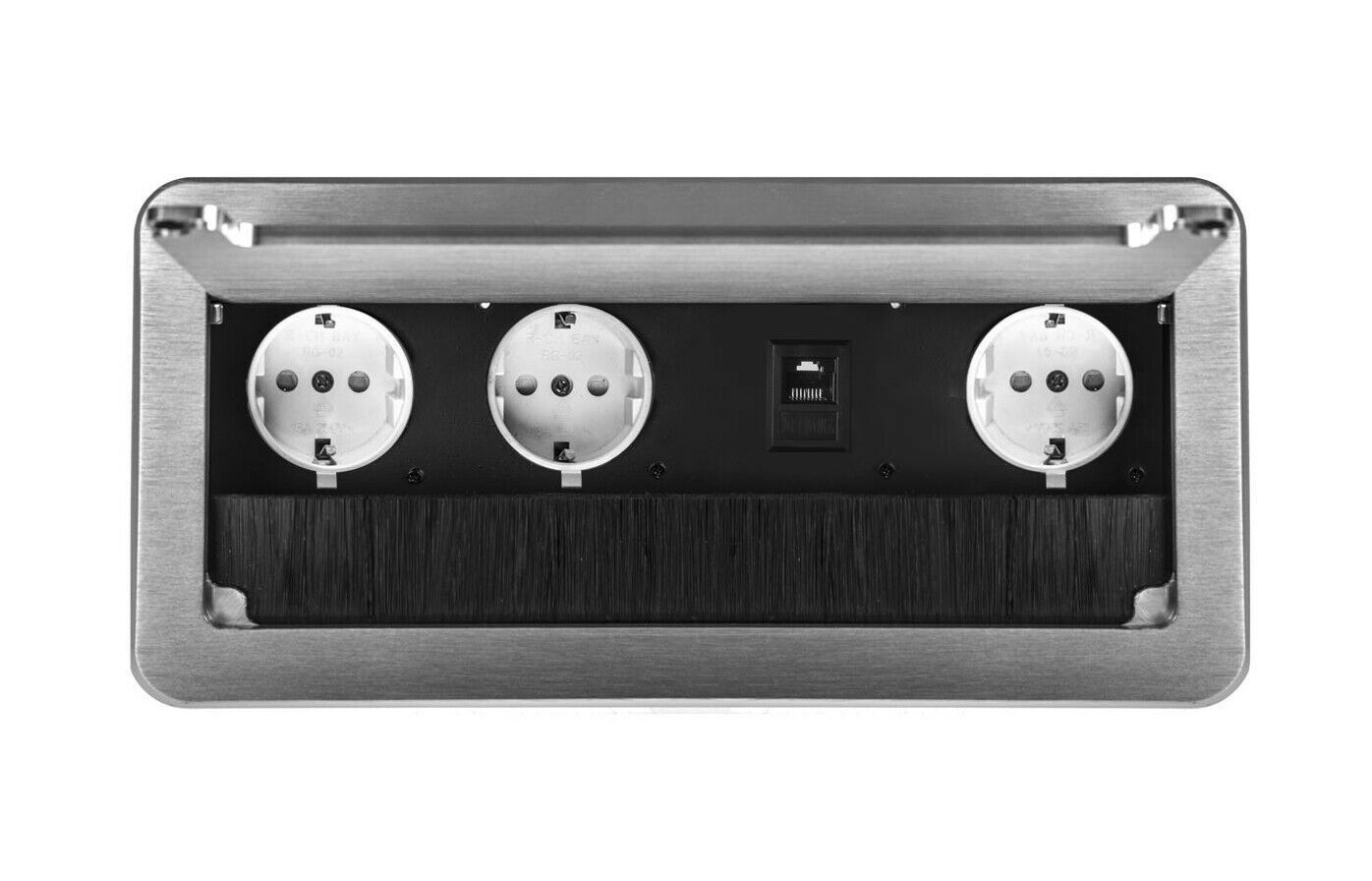 Aluminium Einbausteckdose Tischsteckdose Bodensteckdose Wand Steckdosenleiste