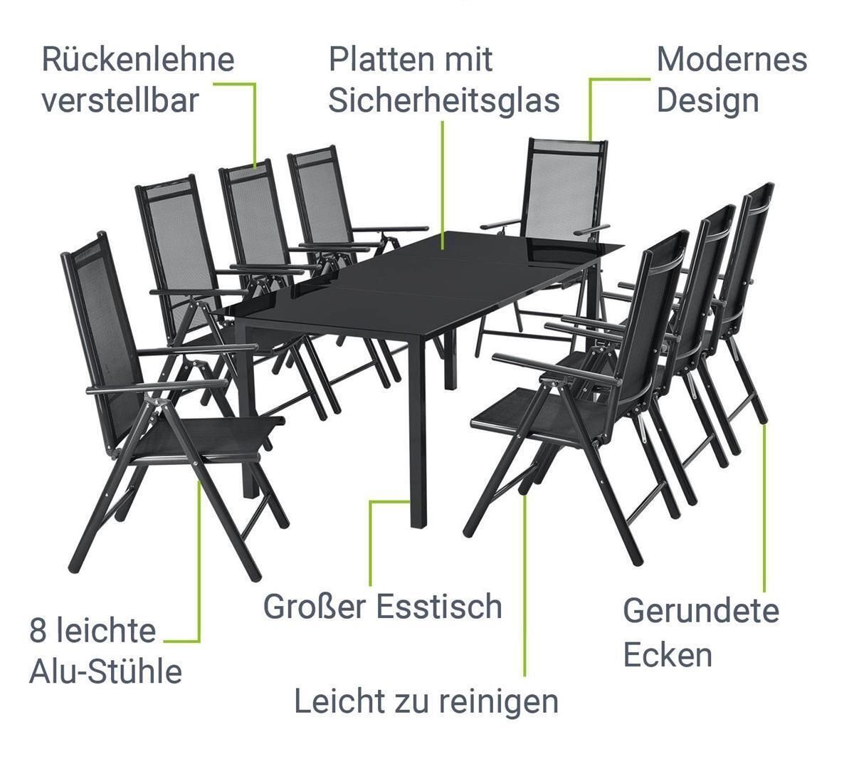 Aluminium Gartenmöbel Set Sitzgruppe silber grau Terrasse Balkon Garten 8 Perso