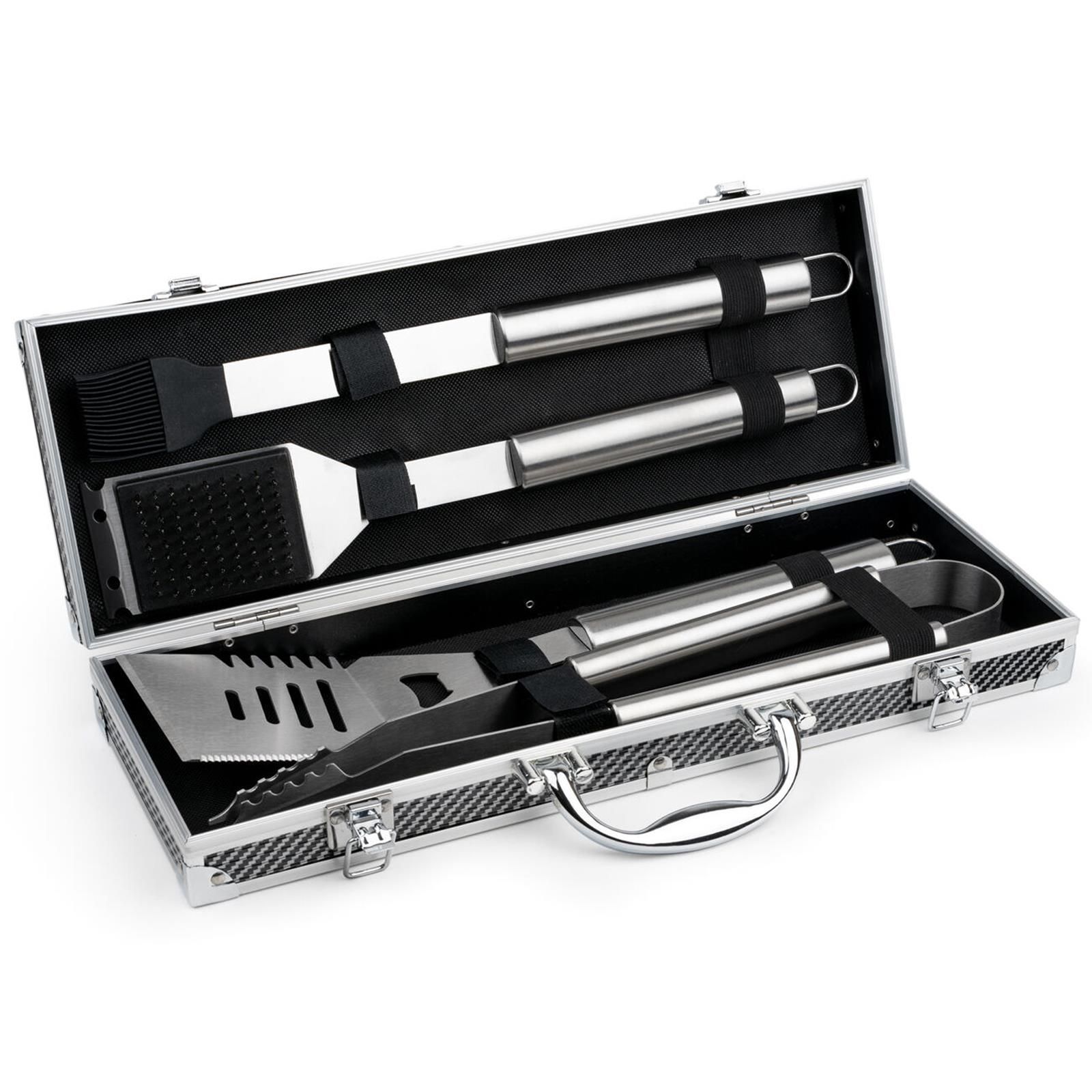 Leopold Vienna Aluminium Grillkoffer 4-tlg, & BBQ Grill-Besteck aus Edelstahl bestückter Koffer