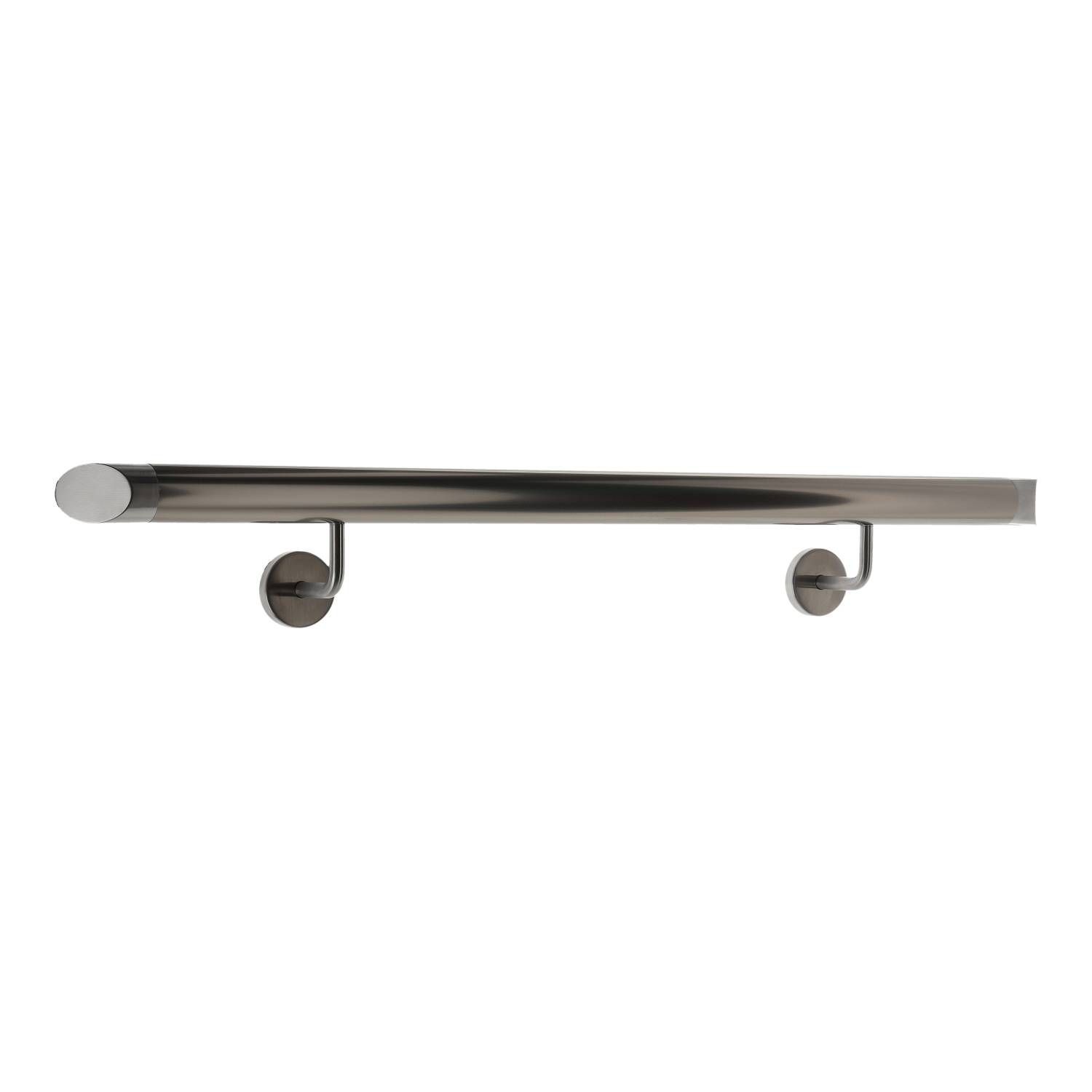Aluminium Handlauf in Edelstahl Optik mit gewinkelte Edelstahlhalter