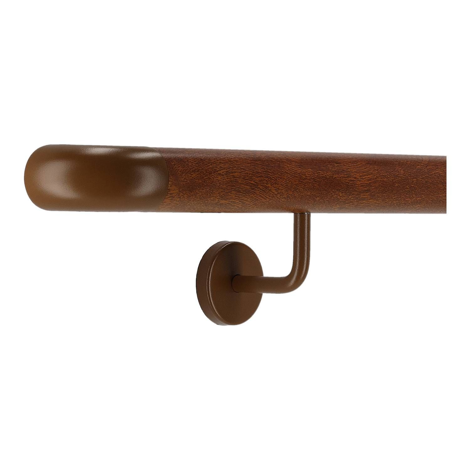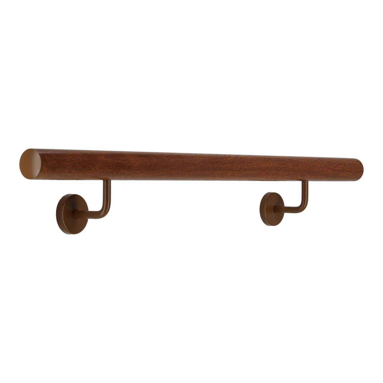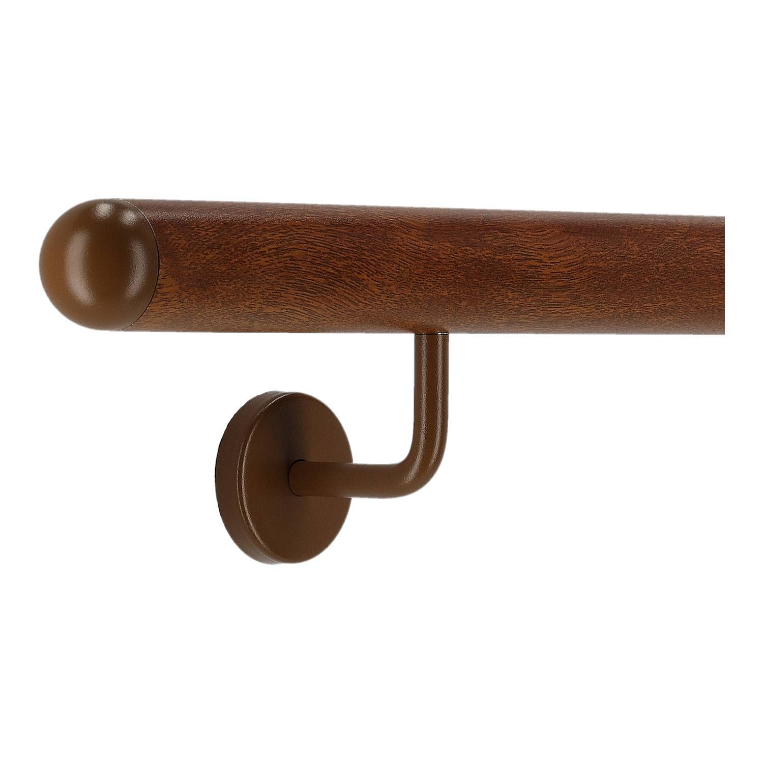 Aluminium Handlauf in Mahagoni Holz Dekor und gewinkelte Edelstahlhalter