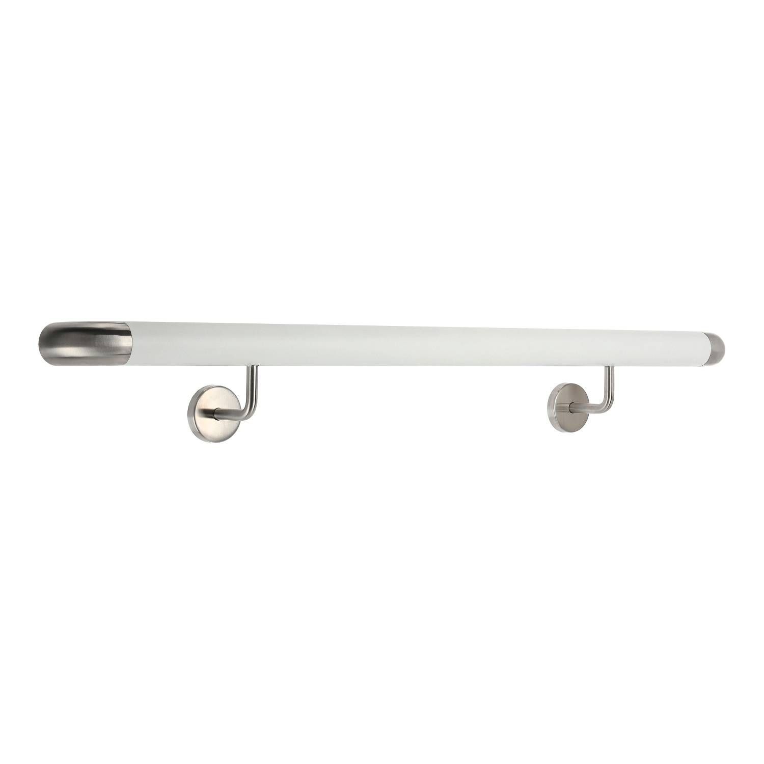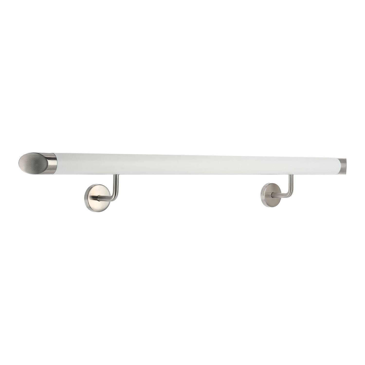 Aluminium Handlauf Weiß mit gewinkelten Edelstahl Haltern und Enden