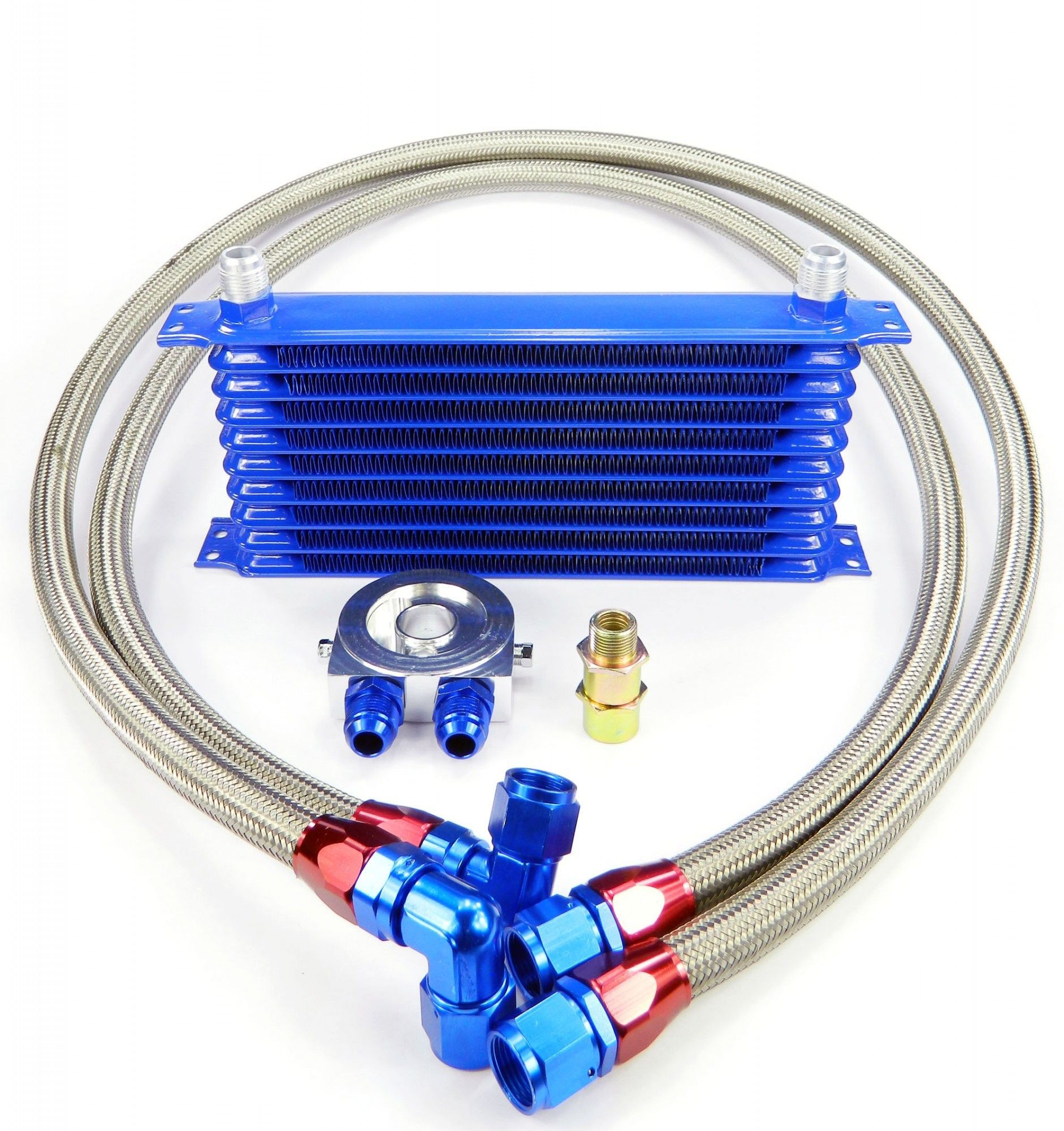 Aluminium Ölkühler SET / KIT 10 RIPPEN BLAU, DASH 10, INKL. Anschlussstücke
